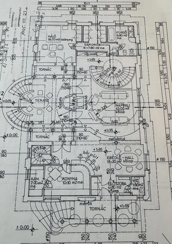 A földszinti rész 190nm, a felső rész 81nm. A garázs szint közel 200nm (4 autó kényelmesen parkolhat), melyben egy külön lakrész is kialakítható.