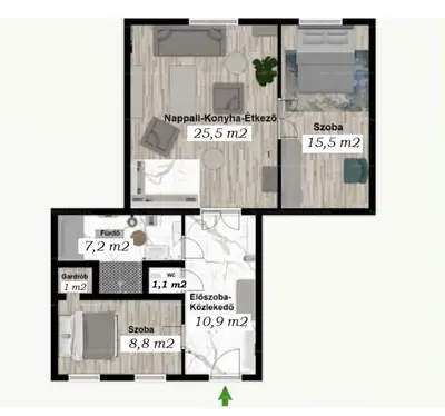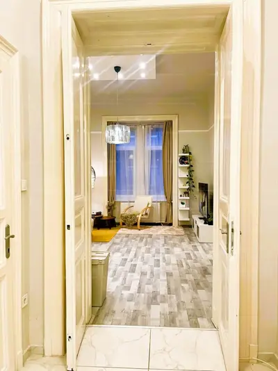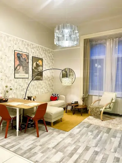 Eladó egy 70 m²-es, 1. emeleti, tégla lakás amerikai konyhás nappalival + 2 külön szobával (gardróbbal).