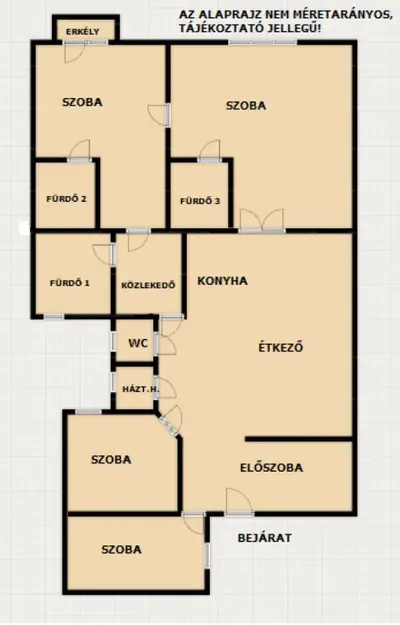 Elrendezése és mérete miatt SOKOLDALÚ felhasználást tesz lehetővé: több hálószoba, külön fürdőszobák, illetve közösségi terek kialakítására alkalmas.