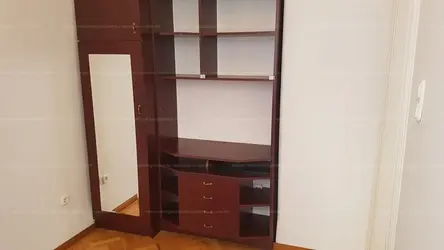 The flat is partially furnished (wardrobe, secretaire, chest of drawers, dining table with 4 chairs, armchairs, double bed, mirrors, chandeliers, courtains). The large bedroom is air-conditioned.