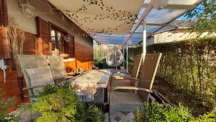 A házat kiegészíti a télikert mellett még egy 22 m2-es fedett terasz, ami intim, belátásmentes.