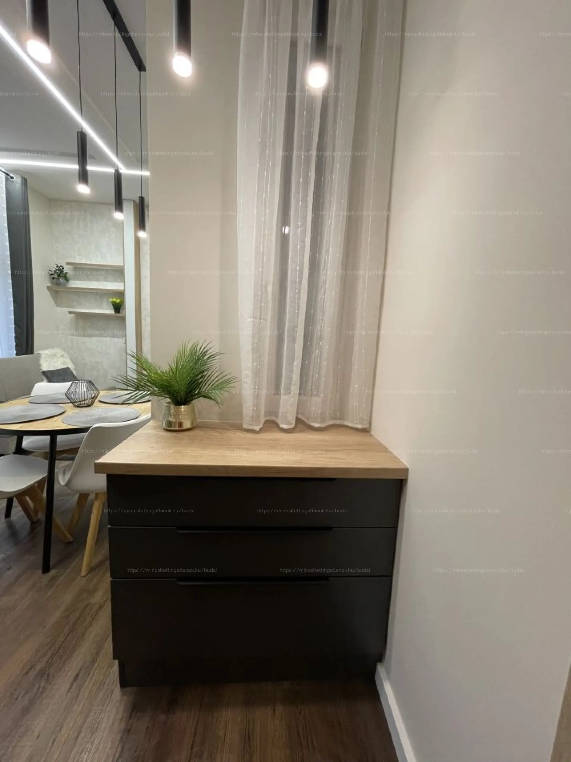 Ezt a lakást azoknak ajánlom szívből, akik egy saját otthont szeretnének teremteni úgy, hogy ne kelljen hónapokat várni a beköltözéssel, hanem azonnal élvezhessék az új életet. 32 négyzetméter az István utcában, ahol minden aprólékosan át van gondolva: egyedi, asztalos által készített bútorok, teljesen gépesített konyha, modern burkolatok, és egy olyan letisztult tér, ami kényelmes, praktikus, és nyugalmat áraszt. Ez nem egy átlagos lakást jelent – ez egy kulcsrakész otthon, ahol Önnek már csak be kell költöznie.