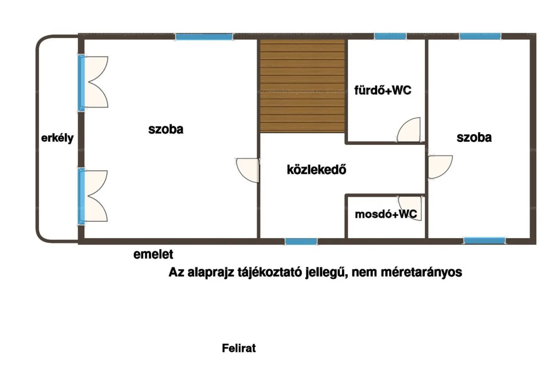 - Tetőtér (70 m²): két hálószoba, fürdőszoba, közlekedő, lépcsőház, terasz.