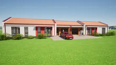 Bár az ingatlan ikres beépítésű, mégis az önálló családi ház érzetét kelti, mivel egymástól független bejárattal rendelkeznek, csak a garázsok falai kapcsolódnak össze!