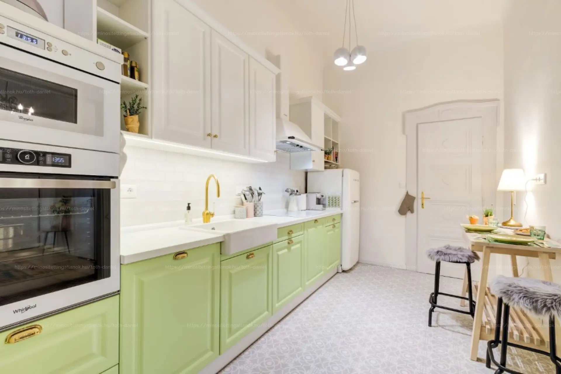 Az ingatlan kiváló belsőépítész tervei alapján felújított, ahol a tágas, napfényes terek, a hatalmas nappali, a gyönyörű parketta és az egyedi design konyha külön kamrával harmonikus egységet alkotnak. A lakás elrendezése ideális: két külön hálószoba, egy ruhaliftes gardróbszoba, hangulatos pihenősarok, egy kényelmes fürdőszoba, valamint saját erkély teszi teljessé az otthont.