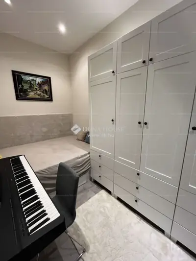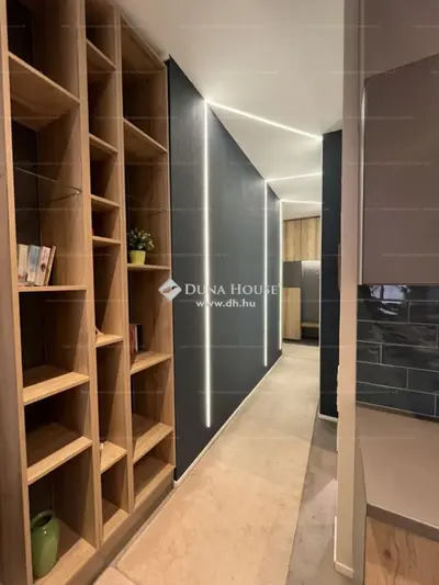A lakásban egyedi asztalosmunkával készült beépített bútorok, elegáns világítótestek, valamint prémium minőségű beépített gépek (sütő, indukciós főzőlap, 12 személyes mosogatógép, hűtő, mélyhűtő) biztosítják a maximális kényelmet.