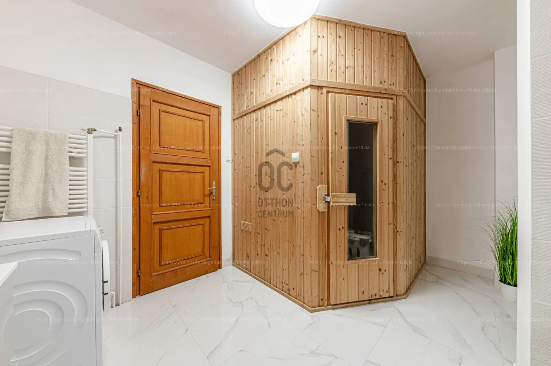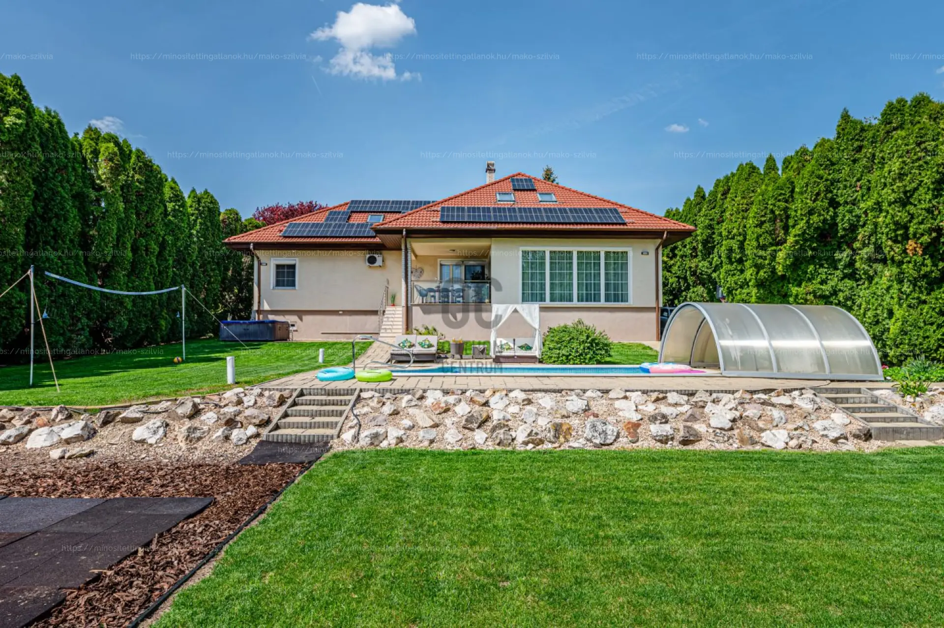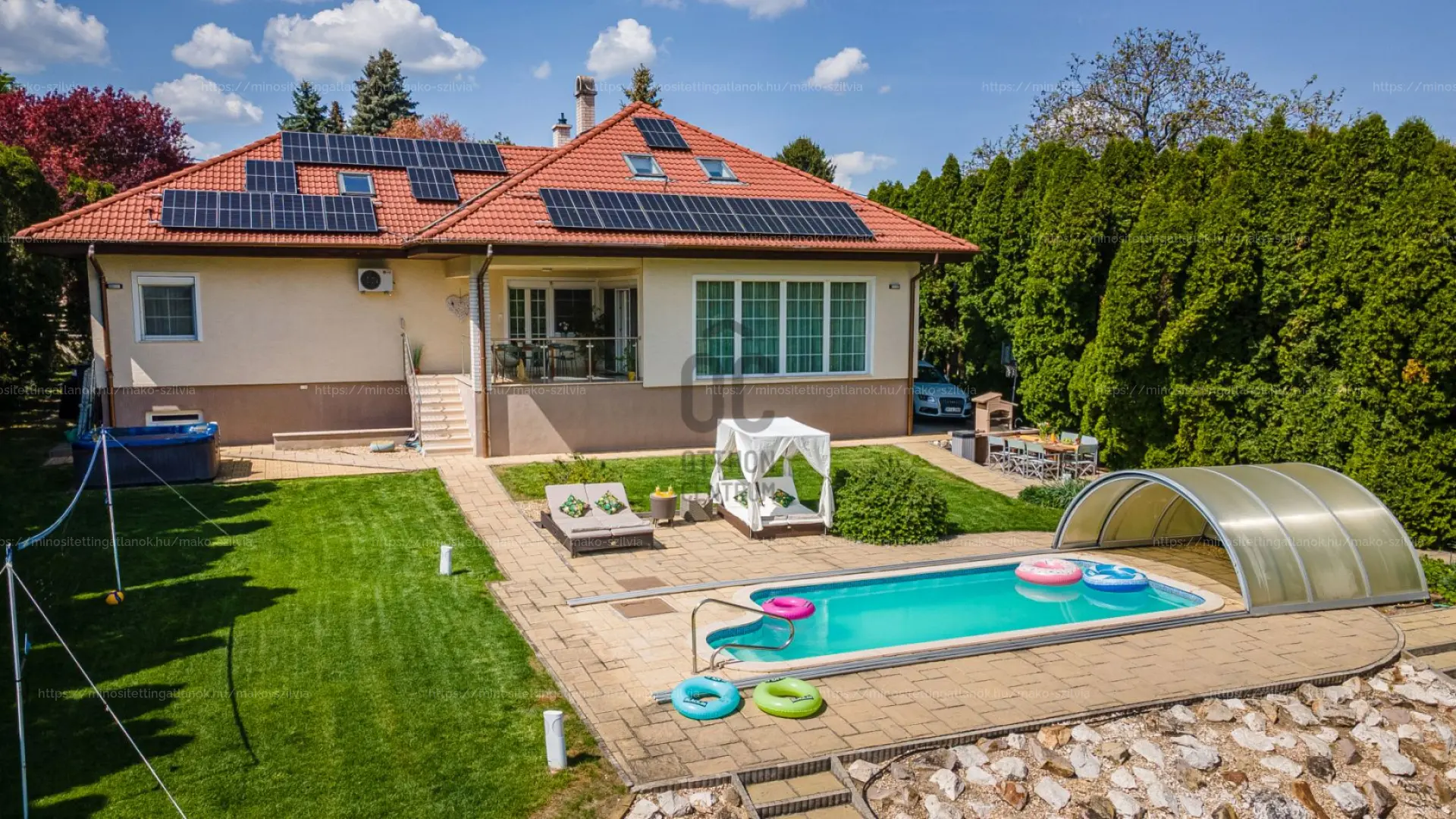 Этот уникальный дом расположен на просторном участке площадью 1284 м², в тихой, но отлично связанной части XXII района.