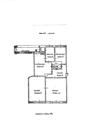 A lakás 82 m2 alapterületű, 3 szoba (24, 20 és 8 m2), 16 m2-es hall, külön konyha kamrával, fürdőszoba. A napfényes nappali és nagy hálószoba a Parlamentre, a kisszoba és a konyha pedig csendes belső udvarra néz. A bejárat előtt külön lezárt saját használatú folyosórész található.