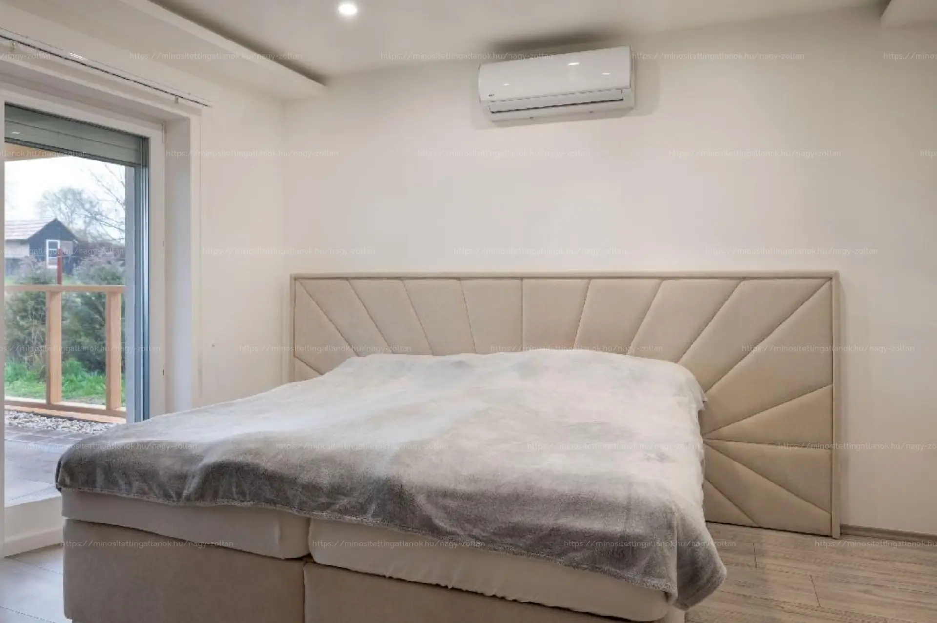 A fűtést hőszivattyú, elektromos kazán, padlófűtés, valamint otthonos hangulatot teremtő zsírköves kandalló biztosítja. Minden helyiség hűtő-fűtő klímával felszerelt.