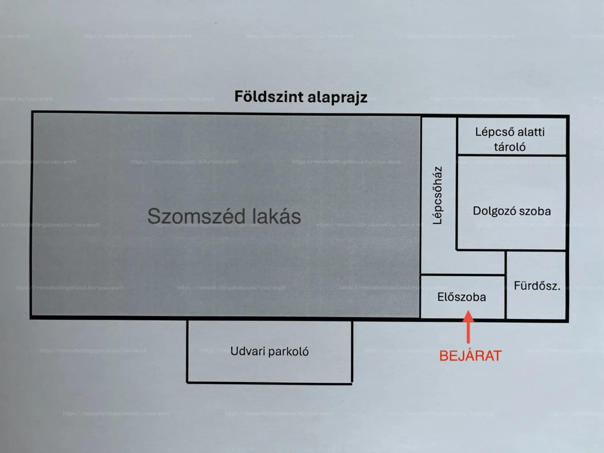 🚗 A lakáshoz tartozik egy nagy méretű udvari kocsibeálló, ami távirányítású fém parkolásgátlóval ellátott (ez nem képezi a vételár részét, külön megvásárolandó, ára 5 M Ft), illetve egy pince is.