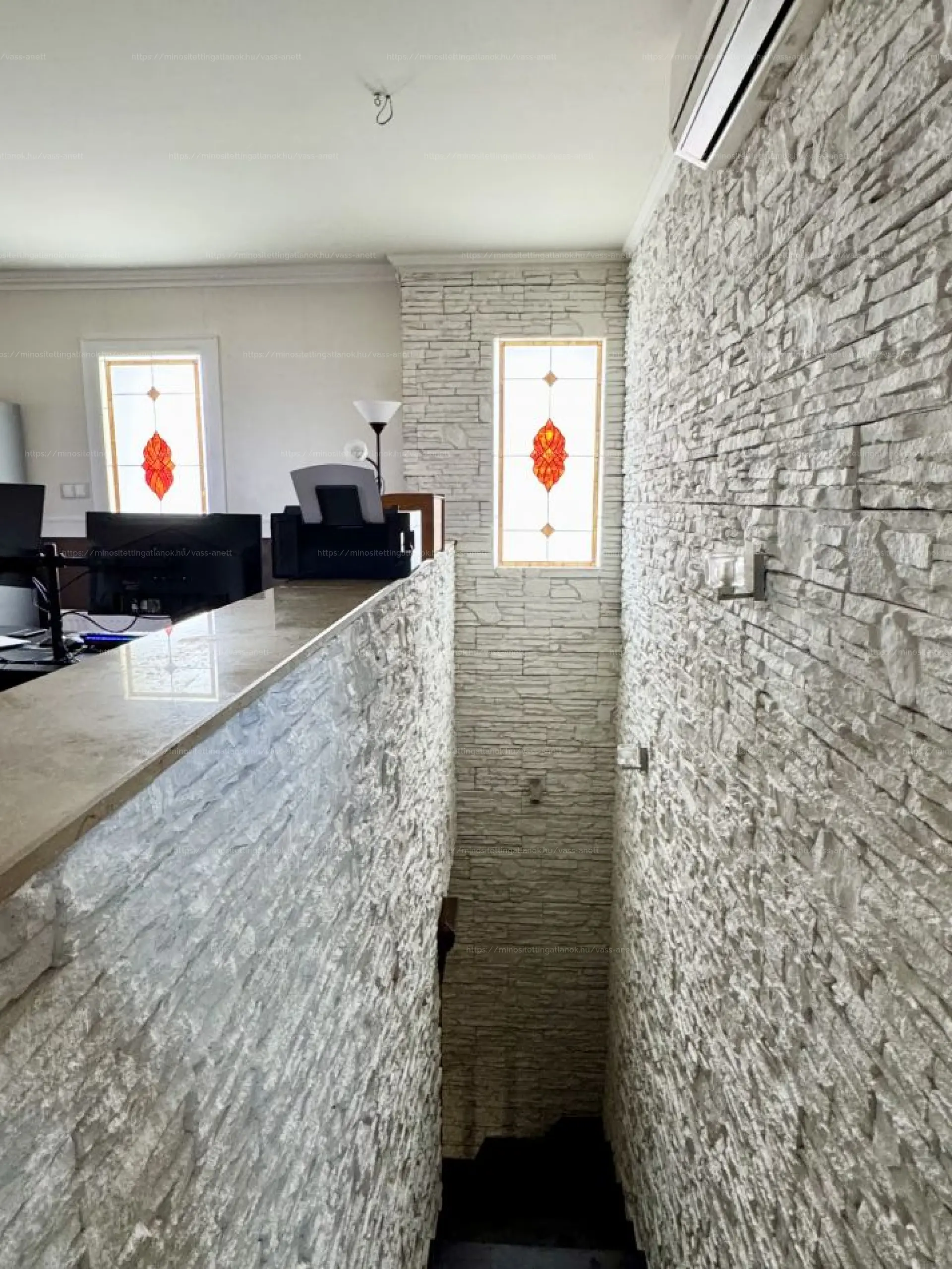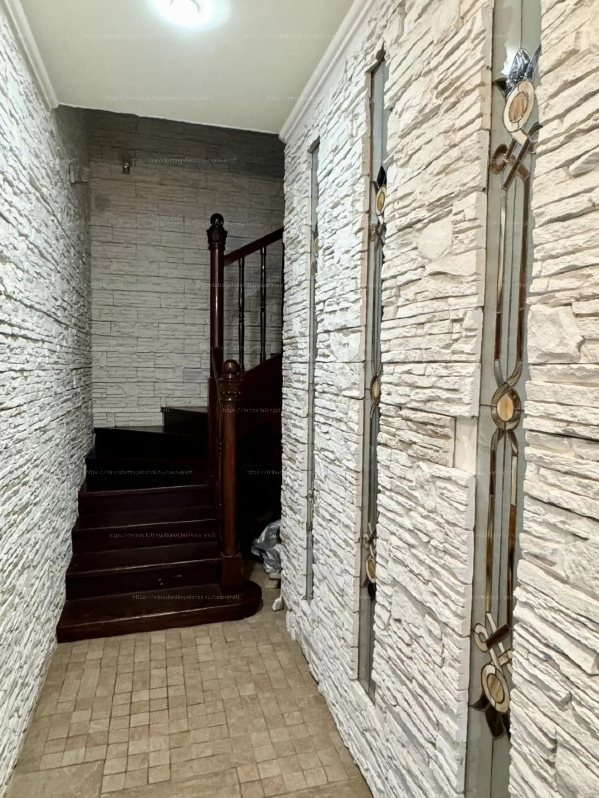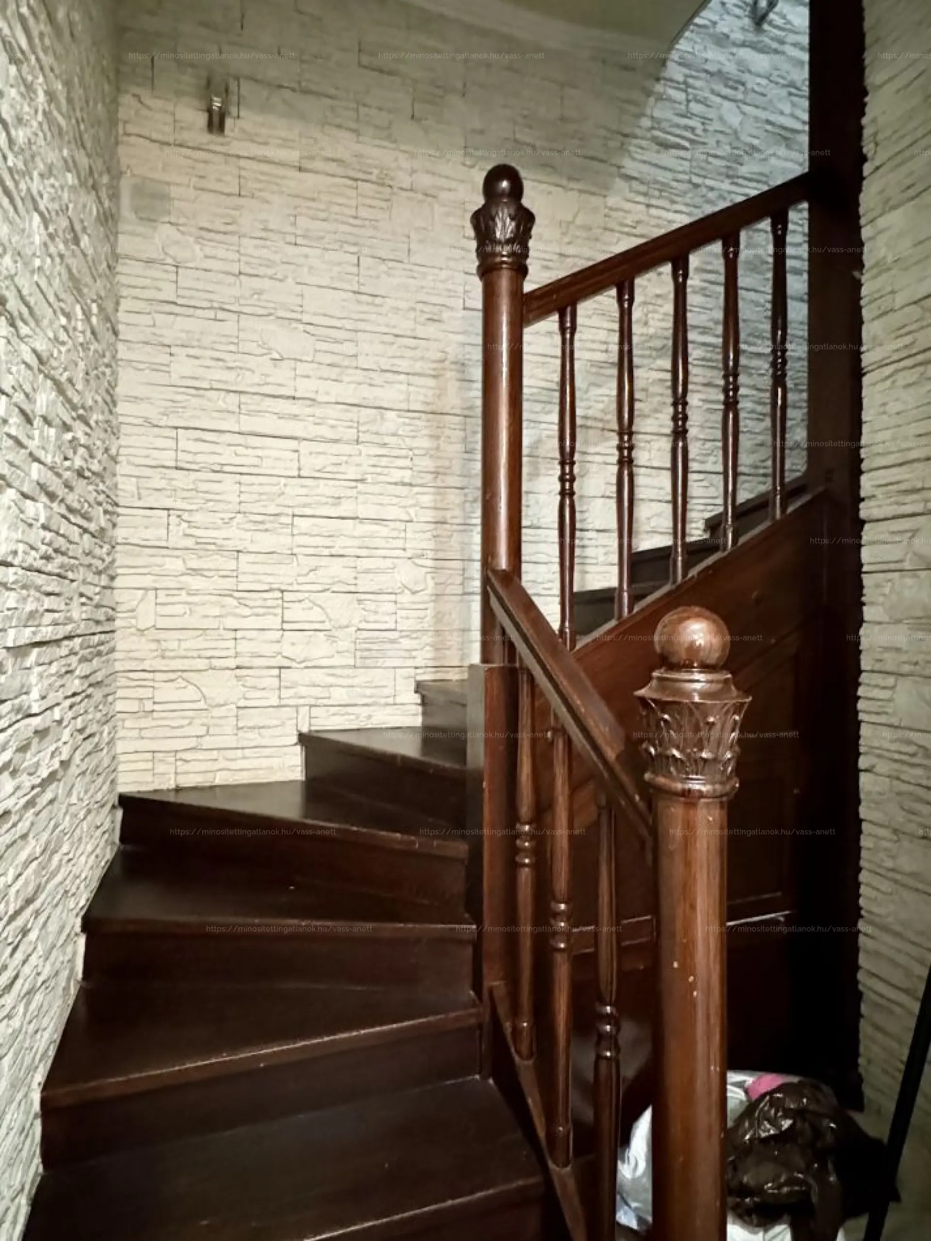 ✅ Az emeletre gyönyörű, faragott tömör fa lépcső vezet, kővel borított folyosóval és lépcsőházzal.