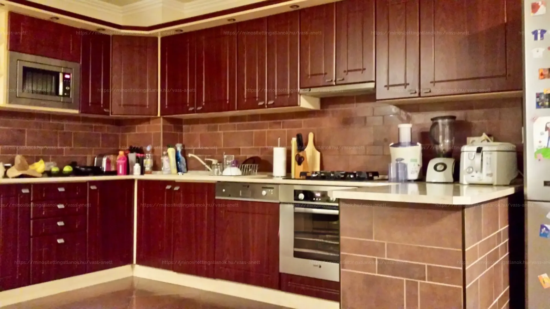 📌 A klasszikusan elegáns konyhabútort minőségi beépített konyhagépekkel szerelték fel (hőlégkeveréses sütő, elektromos főzőlap, mosogatógép, mikrohullámú sütő, páraelszívó).