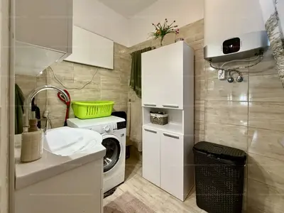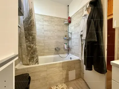 A fürdőszoba és a külön WC teljeskörűen megújult, új burkolatokkal és szerelvényekkel.
