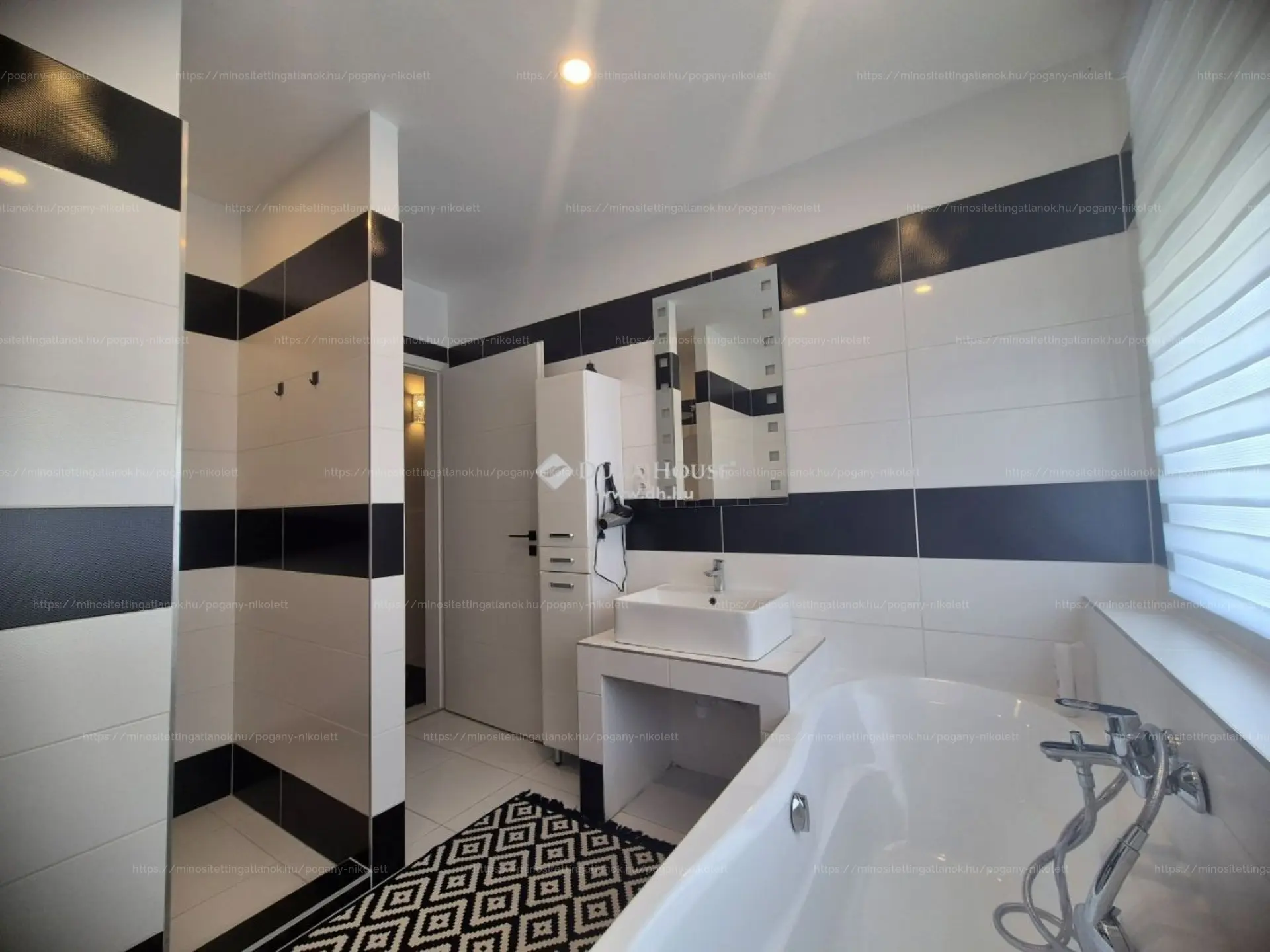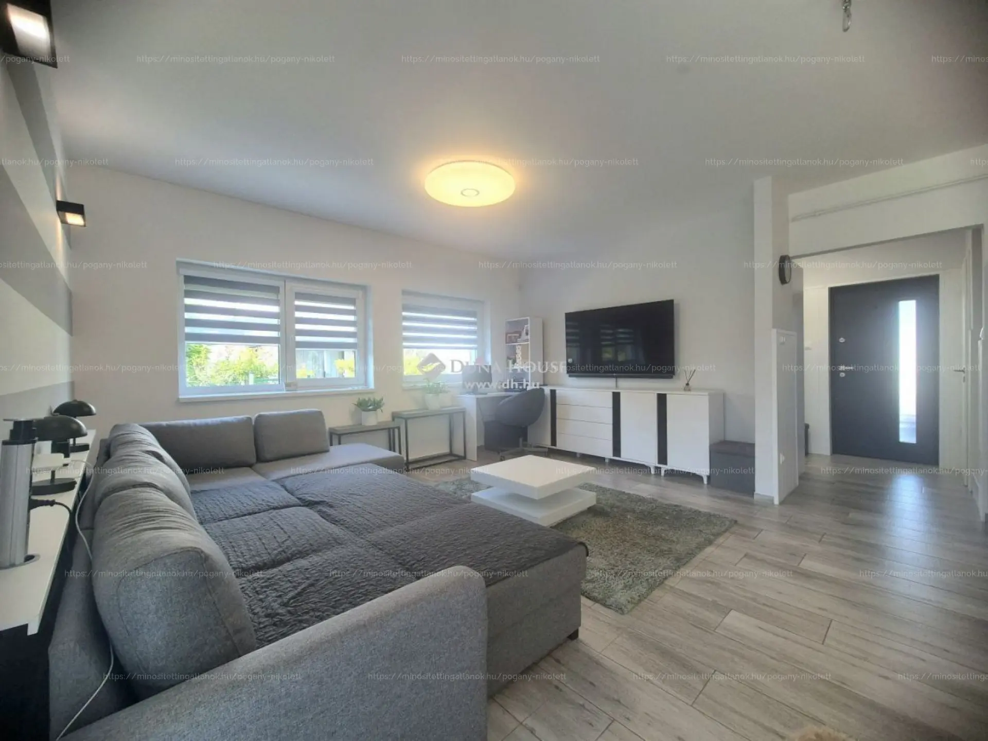 2019-ben épült, belső kétszintes, 131 m²-es (valóságban 154 m²) modern otthon, gyönyörűen gondozott, virágos 400 m²-es telekkel és padlófűtéses, zárható garázzsal!