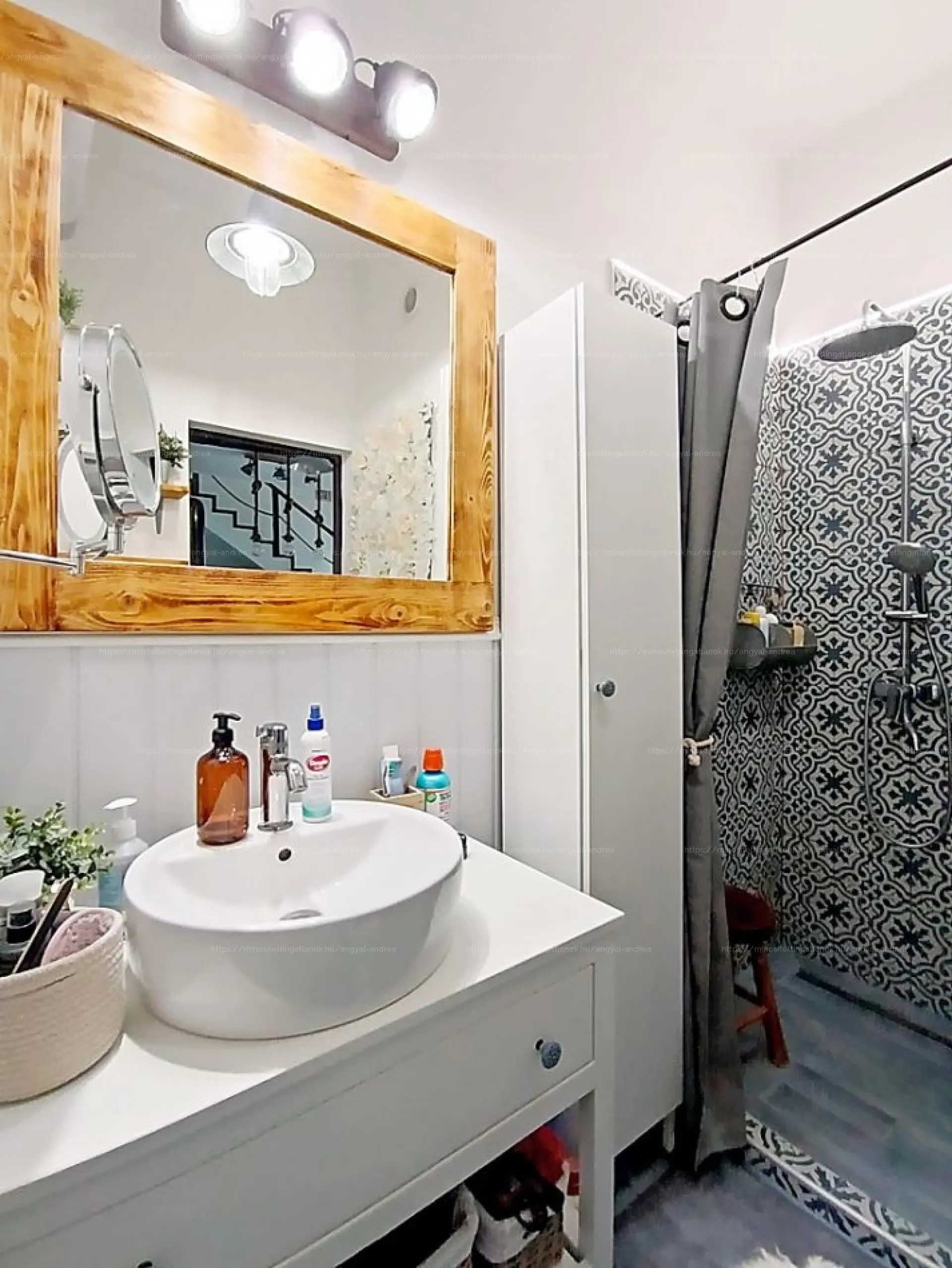 - Alsó szint (34 m²): nappali, konyha, fürdőszoba, KÜLÖN WC