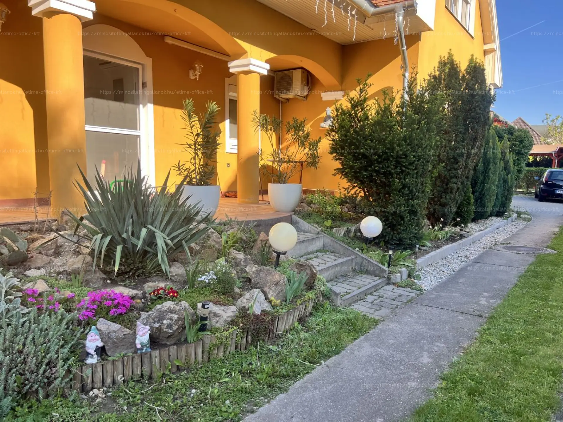 - TÉRKÖVEZETT napozóterület, virágoskert, sziklakert, FÚRT KÚT locsolórendszerrel,