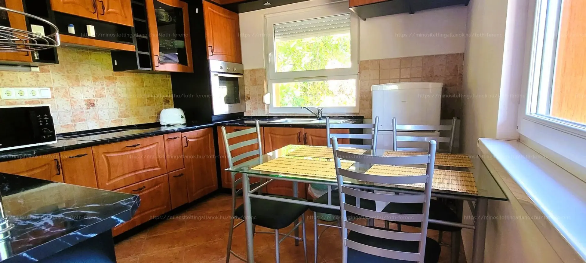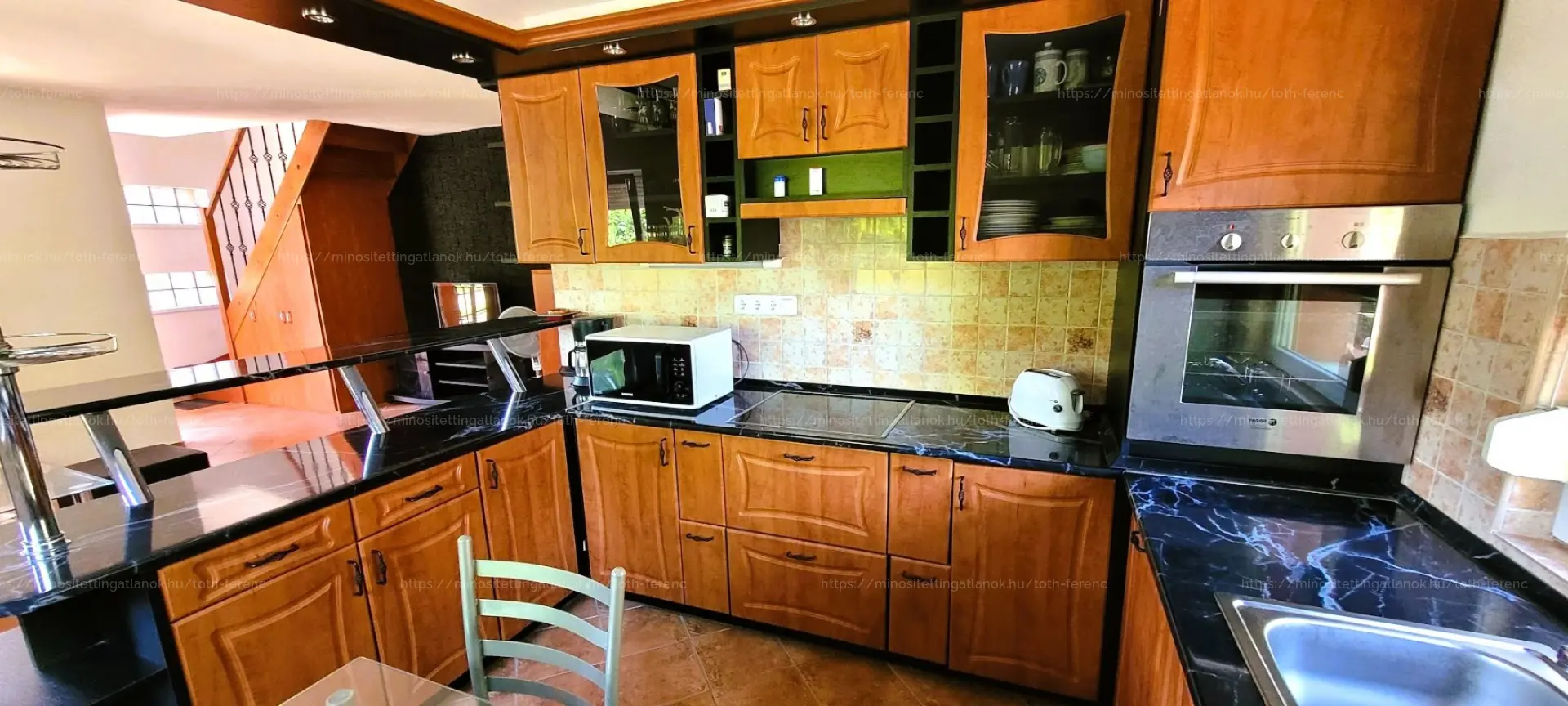 - a konyha teljeskörűen gépesített : beépített indukciós főzőlap, sütő, mosogatógép, hűtő…..