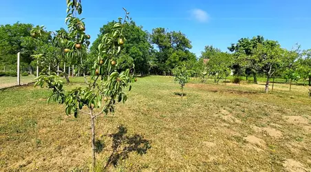 • számos, többségében fiatal, de már termő gyümölcsfa (barack, körte, cseresznye) ontja gyümölcsét a szezonban,