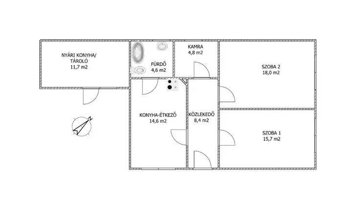 • található itt egy korábbi nyárikonyhaként használt épület, amely jelenleg tárolóként funkcionál,