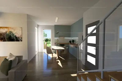 Nappali + 2 háló és az emeleten egy 12,43 m2-es fedetlen terasz az egyik szobából.