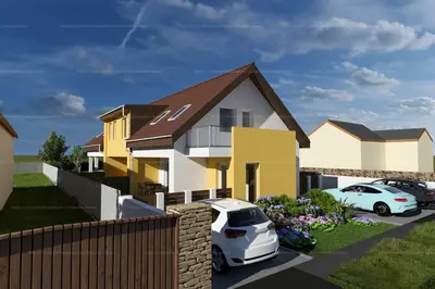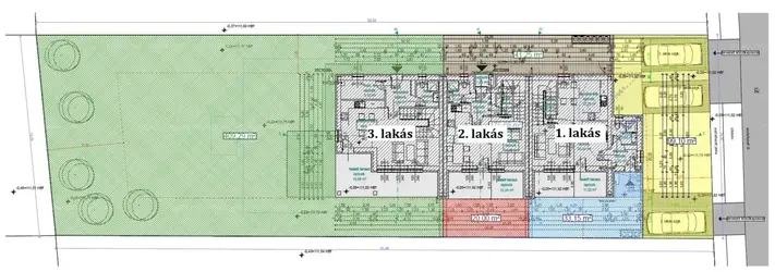 Erdőhöz, Aldi-hoz, Jahn Ferenc Kórházhoz közel, jó közlekedésű helyen, kellemes sétatávolságra jól ellátott lakóteleptől, új és modern játszóterektől, Lidl-től, új építésű lakóparkoktól: egy 823 m2-es telken épülő sorház mindhárom lakása megvásárolható.