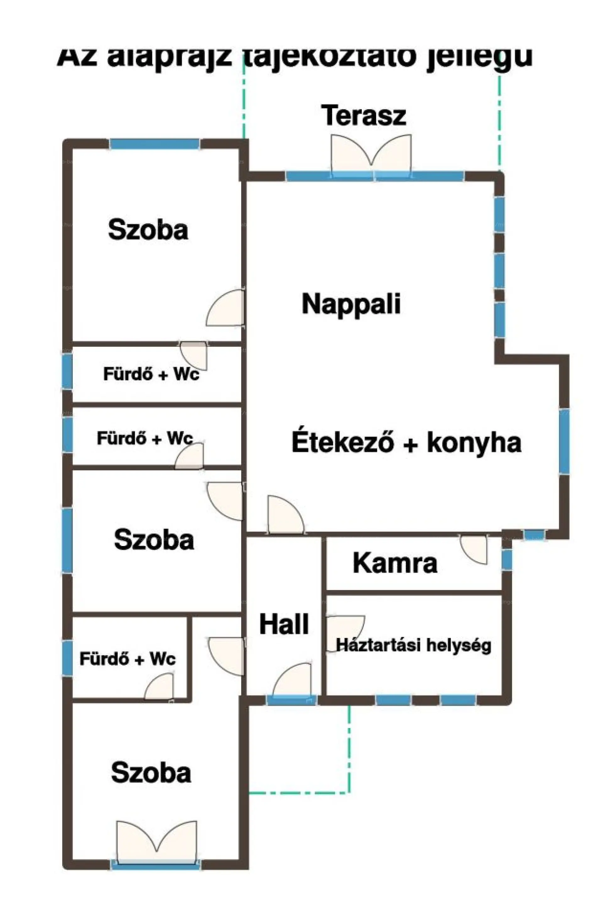 A házban 3 különálló hálószoba található, mindegyik saját fürdőszobával és WC-vel ez a megoldás kényelmes és elegáns, tökéletes akár nagyobb család számára is.
