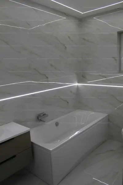 A mennyezeten dekorvilágítás gondoskodik a hangulatos fényekről, így a nappali este is különleges atmoszférát áraszt.