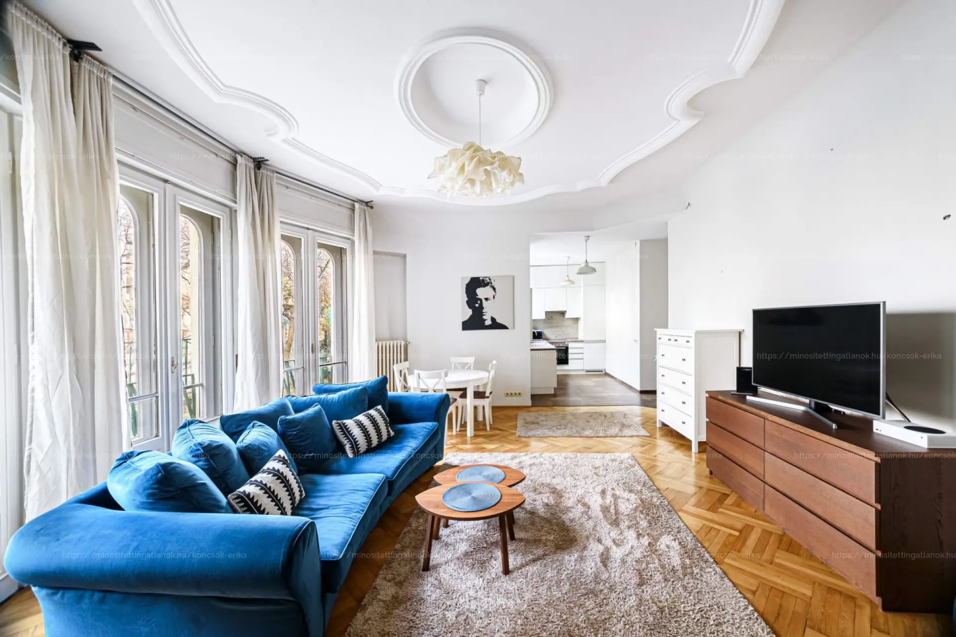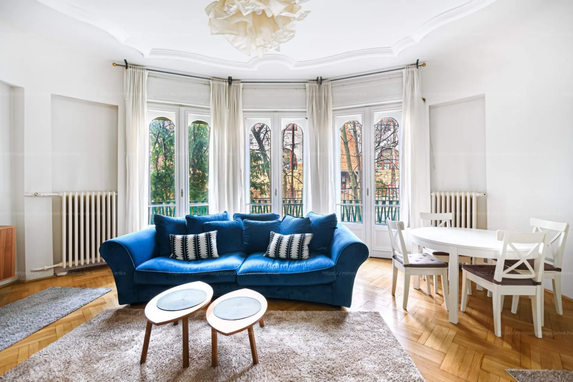 A 72 m²-es otthon, a klasszikus elegancia és a modern kényelem kifinomult találkozása. A 4,2 méteres belmagasság, a napsütötte terek és a látványos félköríves ablakok igazi nagyvonalúságot teremtenek, amely ma már ritkaságnak számít.