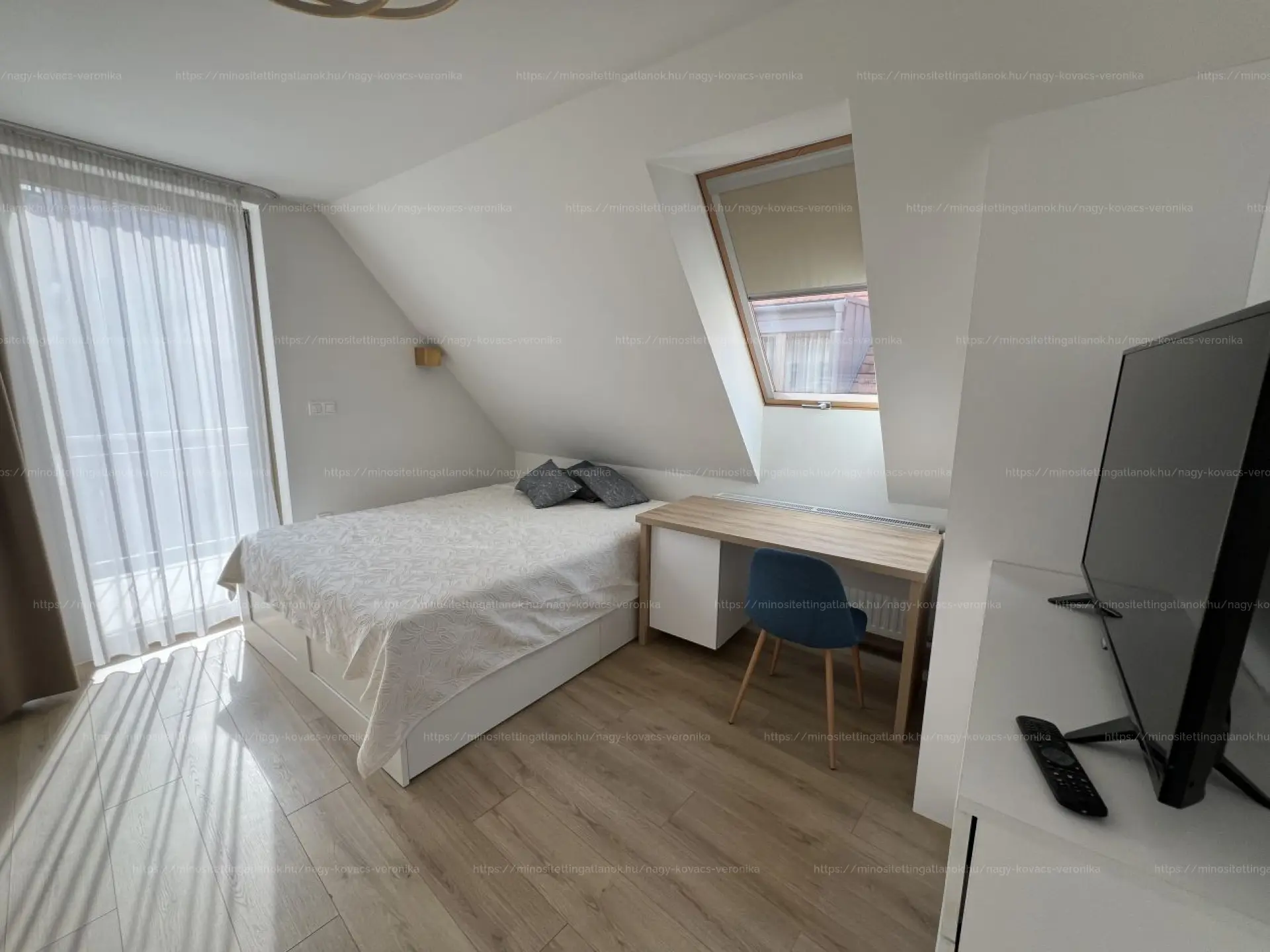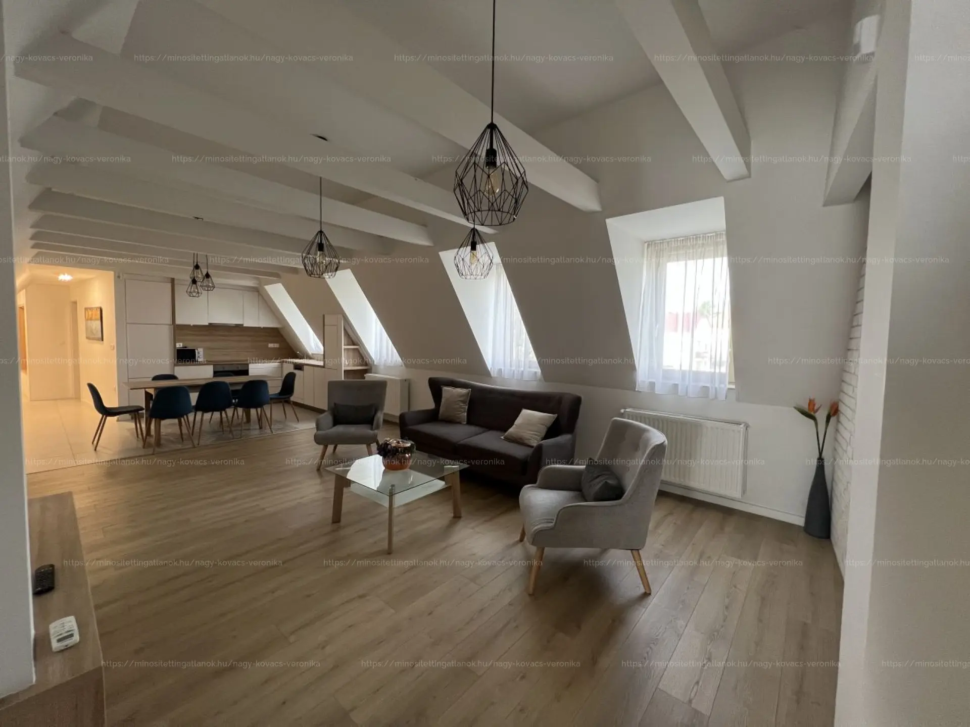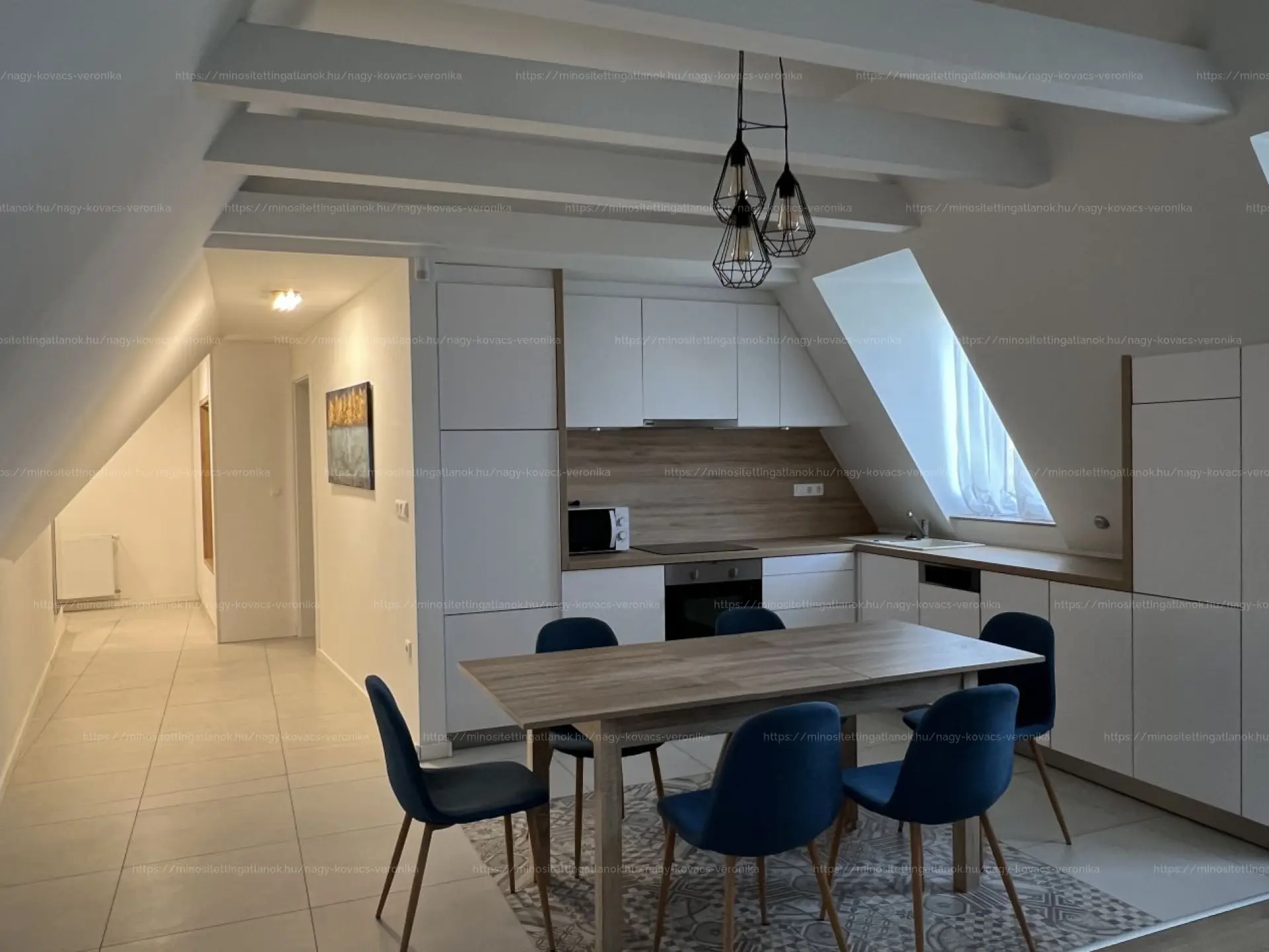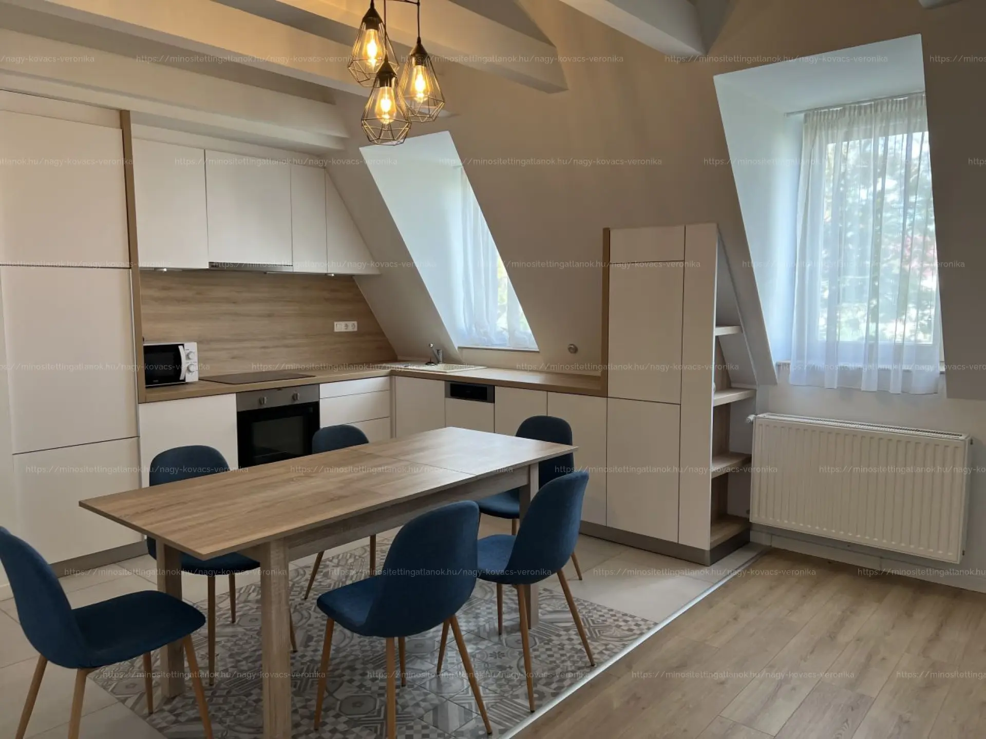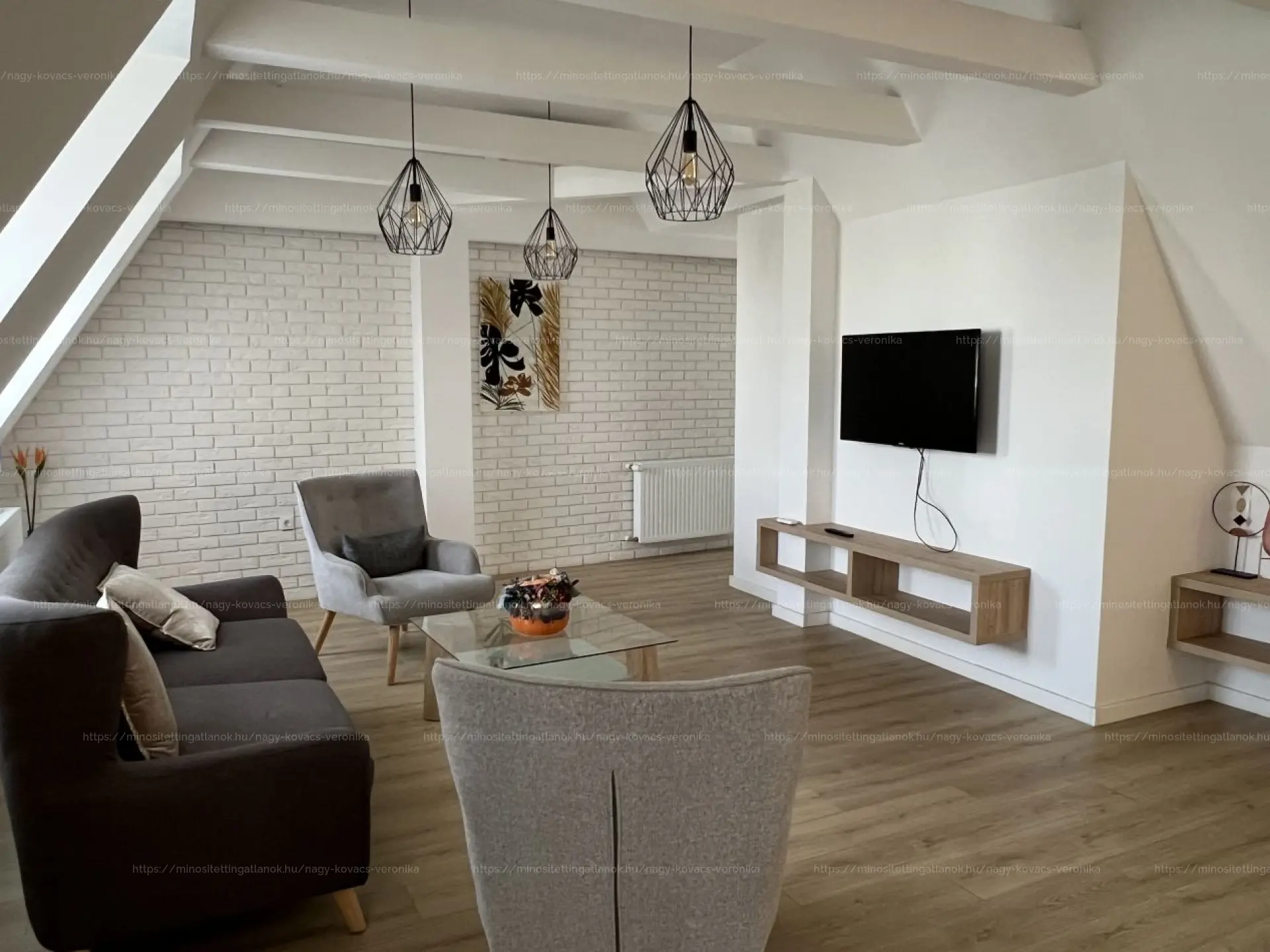 A lakás hangulatát Mennyezetére festett fehér gerendák, téglahatású falburkolatok, és a modern, beépített konyha adja a lakás egyedi karakterét. A nappaliból és a szobákból árad a természetes fény, a szobából nyíló erkély pedig tökéletes hely a reggeli kávé élvezetére.