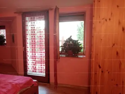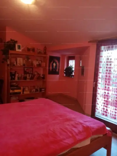 A felsõ szinten tágas szoba, egy félszoba és erkély van.