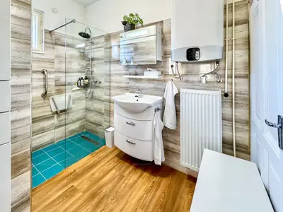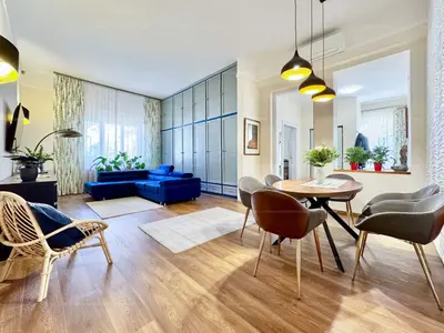 Nappali–étkező, hálószoba, modern konyha, külön fürdő és WC