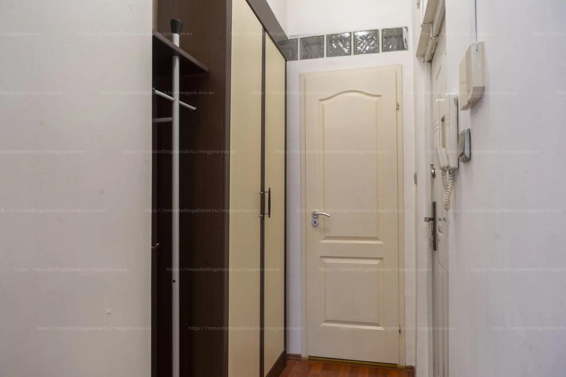 Belső kialakítás: előszoba, kombinált konyha-nappali-hálószoba, fürdőszoba, KÜLÖN WC. A lakás ÉK-i fekvésének köszönhetően VILÁGOS, kellemes atmoszférájú lakás. Utcai nézete ellenére CSENDES, NYUGODT atmoszférájú. Az új, kétrétegű, HŐ- és HANGSZIGETELT ablakok REDŐNYNEL és SZÚNYOGHÁLÓVAL szereltek. Az előszobai BEÉPÍTETT SZEKRÉNY sok tárolóteret kínál.