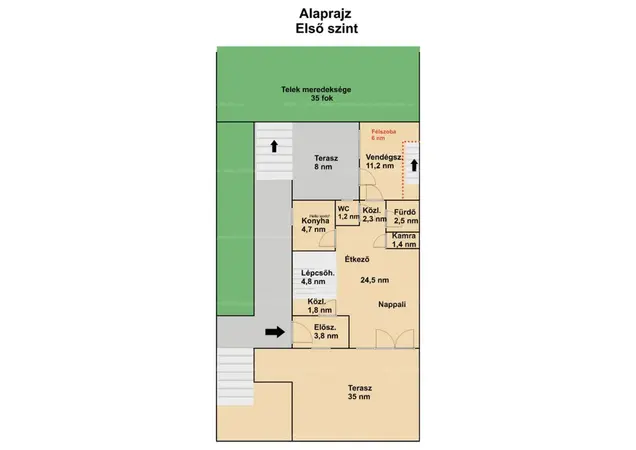 A telek hátsó része jelenleg nincs teljesen kihasználva, ami fantasztikus lehetőséget ad a jövőbeli tulajdonos számára. A lépcsőzetes kialakítás lehetővé teszi: magaságyások, kerti sütögető, pihenősarok vagy akár nyári konyha létrehozását. A jelenlegi állapotban a kert rendezést igényel, de hatalmas potenciált rejt magában.