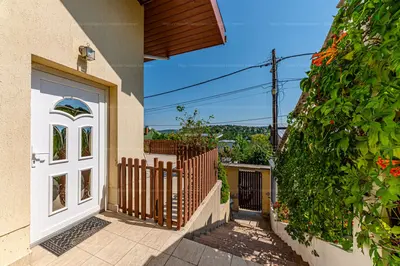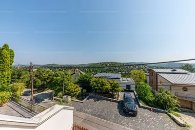 Az ingatlan egyik legnagyobb erőssége a gyönyörű panoráma, amely a nappaliból, a teraszokról és a felső szintekről is élvezhető. A telek hátsó része közvetlenül a természetvédelmi terület szélén helyezkedik el, így madárcsicsergés, nyugalom és zöld környezet öleli körül az otthont. Ezen a részen a nyári hónapokban érezhetően hűvösebb, kellemesebb a klíma, mint a belvárosban – akár több fokkal is alacsonyabb lehet a hőmérséklet.