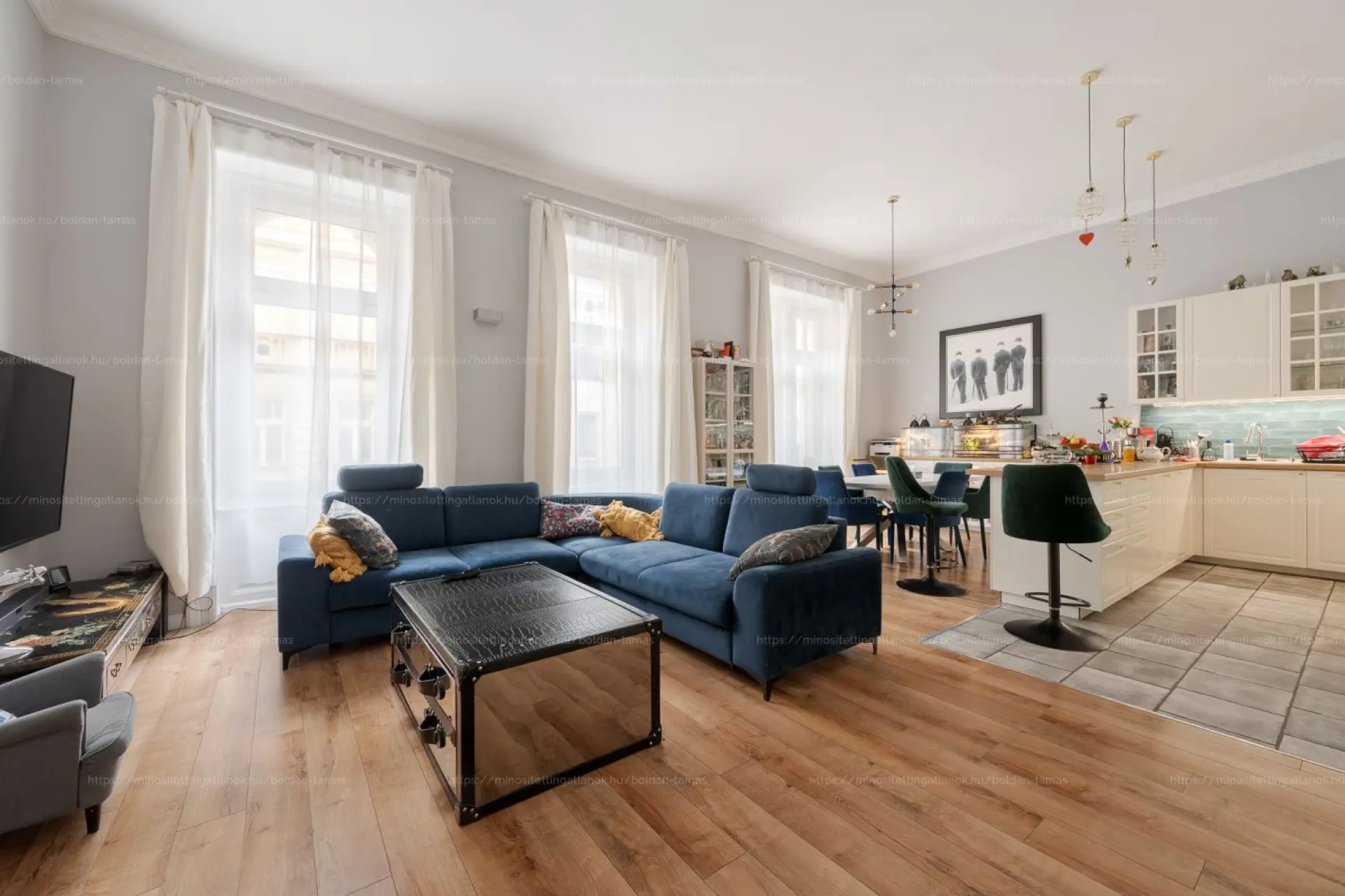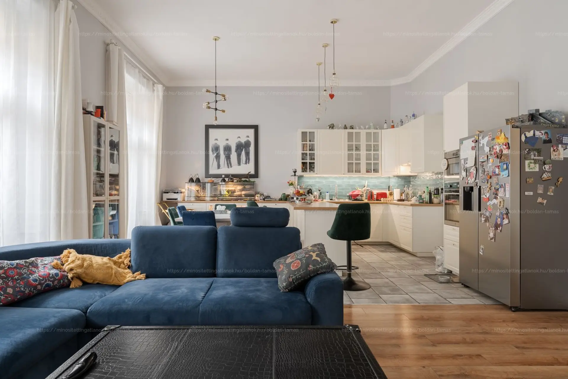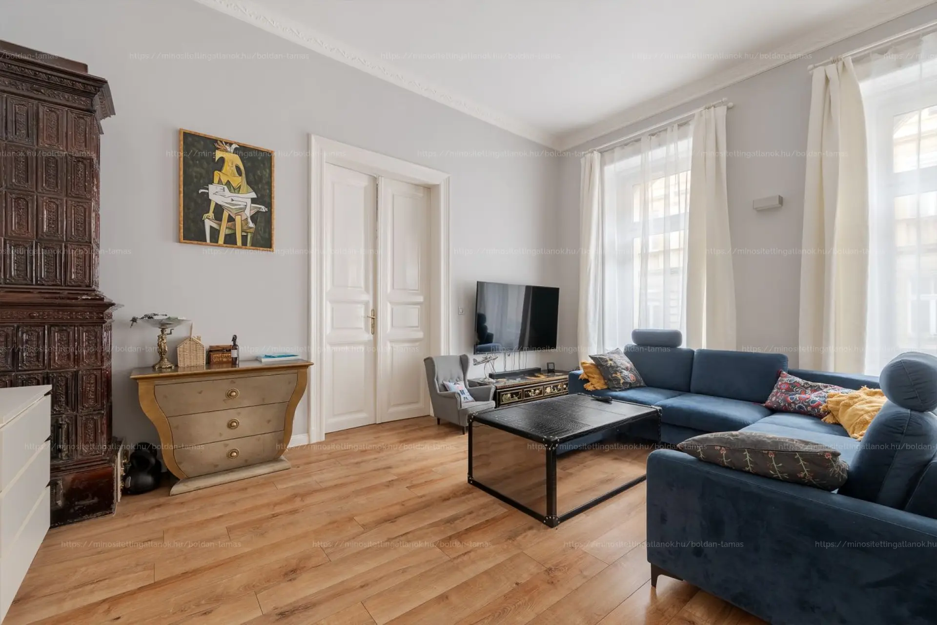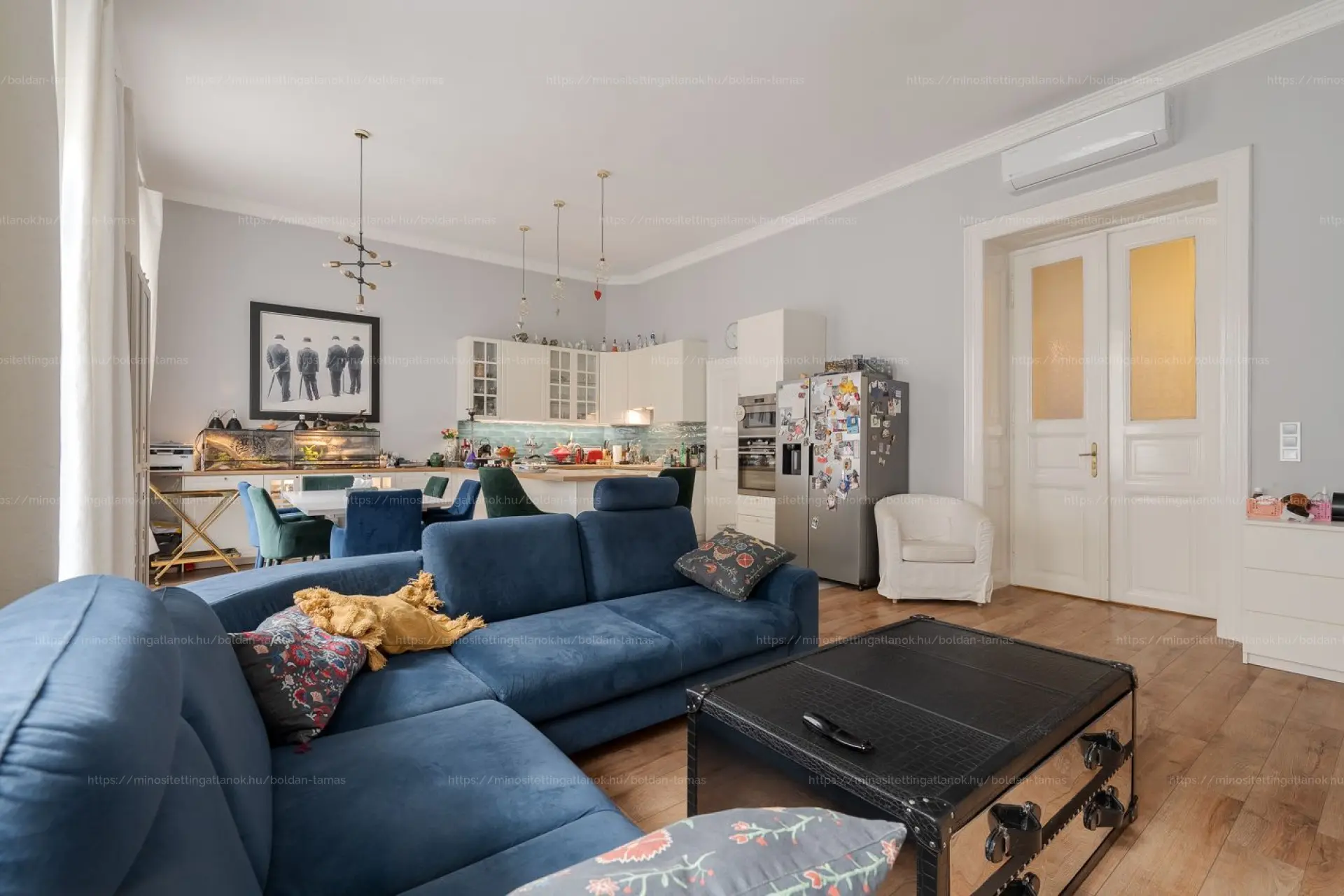 Eladó sorba került ez a tulajdonos által saját célra, igényesen felújított (kb. 5 éve) tágas 107 m2,-es polgári karakterű, mégis modern, erkélyes lakás a Dohány utca körúton kívüli, békésebb szakaszán. A nagyvonalú terek, a felújított cserépkályha és az eredeti belső nyílászárók találkoznak a távvezérelhető padlófűtéssel, kondenzációs kazánnal és klímával – családnak, otthonról dolgozóknak, befektetőknek tökéletes választás.