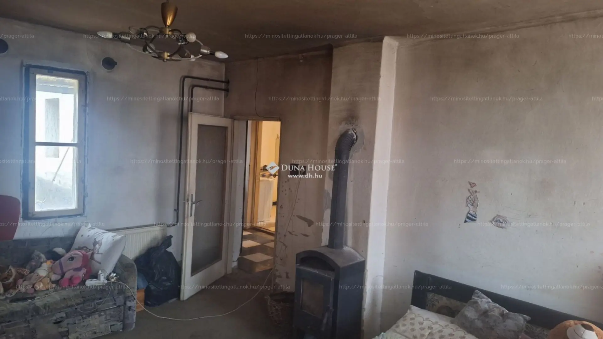 A házban megtalálható két tágas szoba, amelyek igény szerint alakíthatók, valamint egy konyha és egy előtér is rendelkezésre áll. A ház víz- és villanyellátása biztosított, de a gázellátás még nincs megoldva. Jelenleg kandallóval lehetséges a fűtés, de a bőséges belső tér ad lehetőséget egy modern fűtési rendszer kialakítására is.