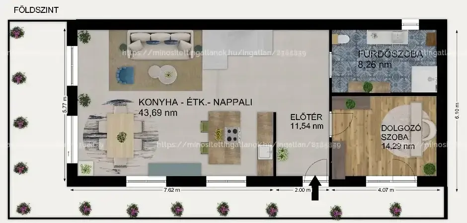 A csendes környezet, a tágas telek, a kertre néző kilátás és a korszerű felszereltség együttesen ideális otthont biztosít.