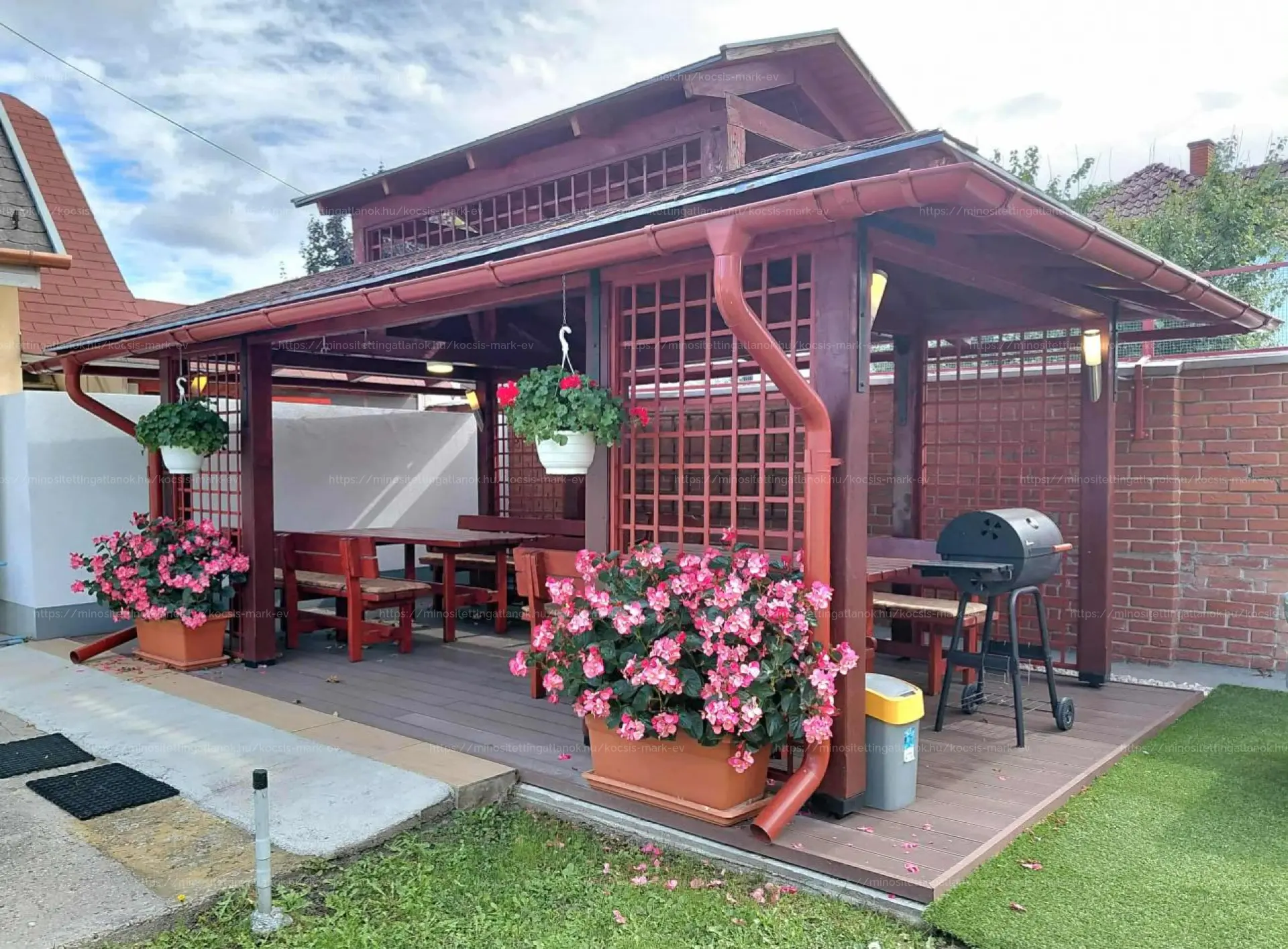 A rendezett udvarban igényesen kialakított, fedett kültéri terasz biztosít kellemes pihenési lehetőséget a nyári estéken, emellett egy könnyűszerkezetes tároló is rendelkezésre áll. A környéken állandó lakosok élnek, a szomszédság csendes és barátságos.