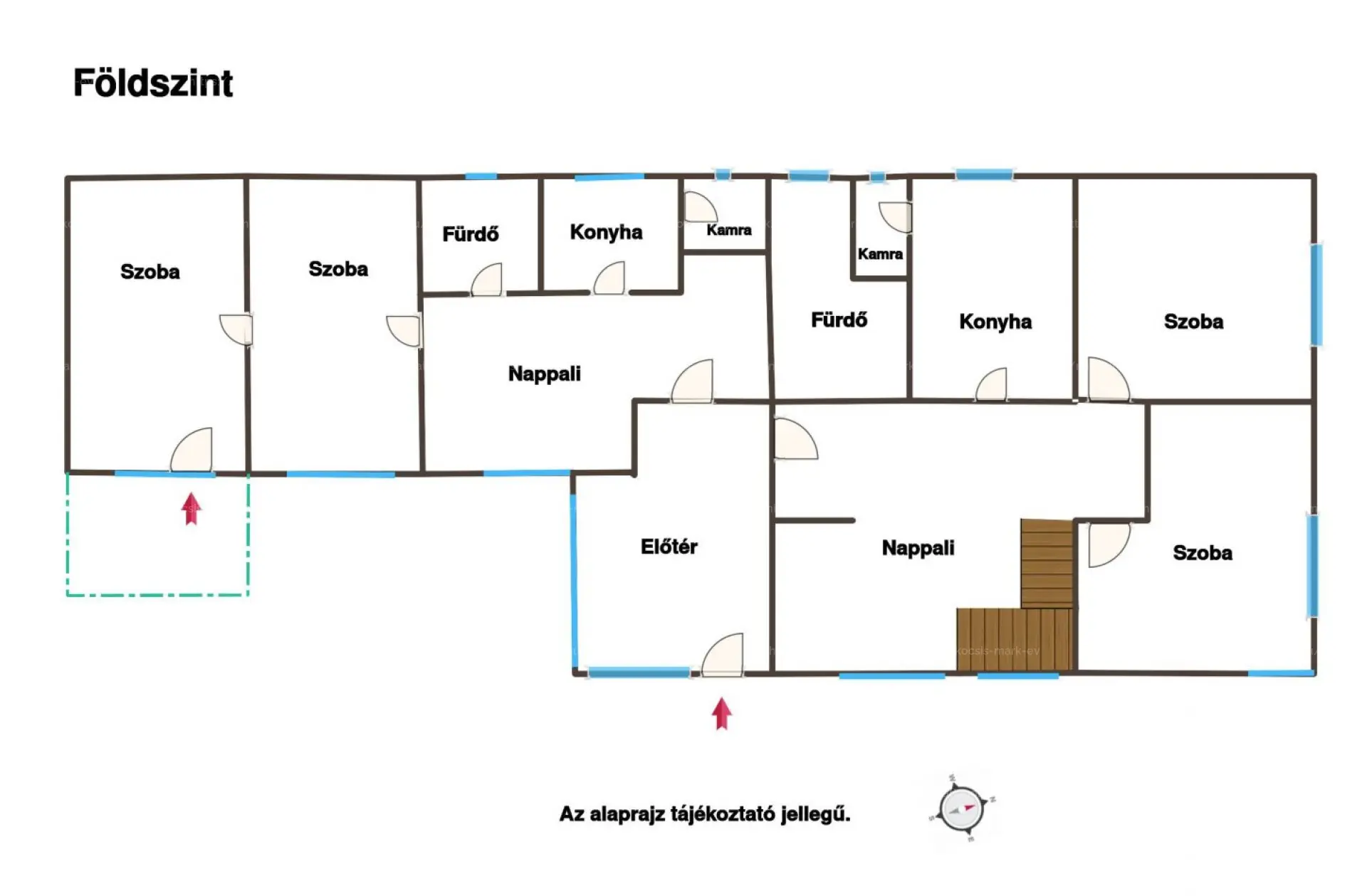 Az 180 m²-es lakótérben 5 szoba, 2 konyha és 2 fürdőszoba kapott helyet, ami több generáció együttélésére vagy vendégek fogadására is kiváló lehetőséget kínál.