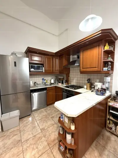 Eladásra kínálok egy 97 m2 alapterületű nagypolgári három szobás társas házi lakást. A nappali 23 m2 alapterületű, udvarra néző ablakos, légkondicionált, innen nyílik a 25 m2 alapterületű utcára nyíló ablakos szoba, ami a hálószobából is megközelíthető. A hálószoba 16,5 m2 alapterületű, utcára néző ablakos. A lakás körbe járható, külön és egybe nyíló szobákkal. A konyha udvarra néző ablakos, beépített konyha bútorral,villany tűzhellyel és gáz főző lappal,szag-pára elszívóval az étkező is kényelmesen elfér mellette. A konyhából nyílik egy tároló helység és a kamra. A fürdőszoba 8 m2 alapterületű sarokkádas, mosdóval és zuhanykabinnal, a toalett innen nyíló külön ablakos helységben kapott helyet. A meleg vízről és az otthon melegéről gáz cirkó gondoskodik, vízórával felszerelt lakás.
