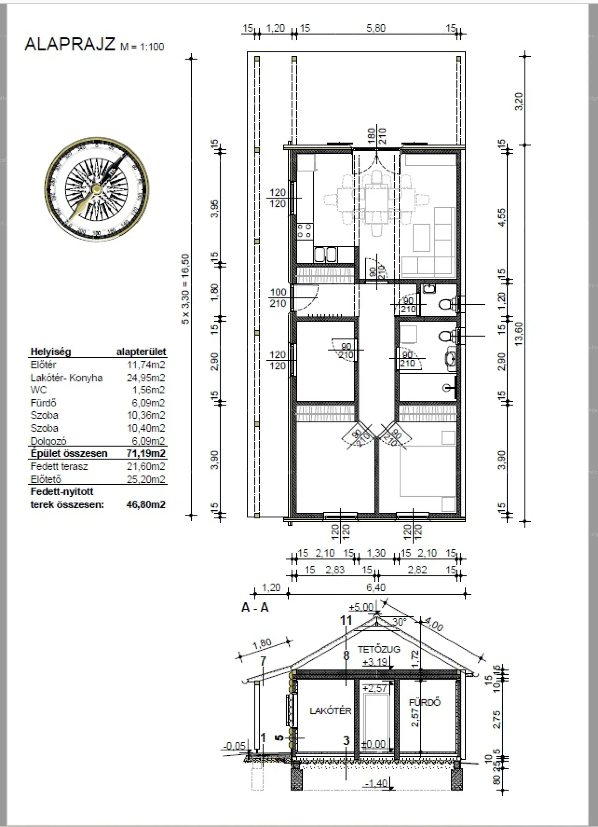 71 m² hasznos alapterület, 114 m² összterület – tágas, átgondolt elrendezés
