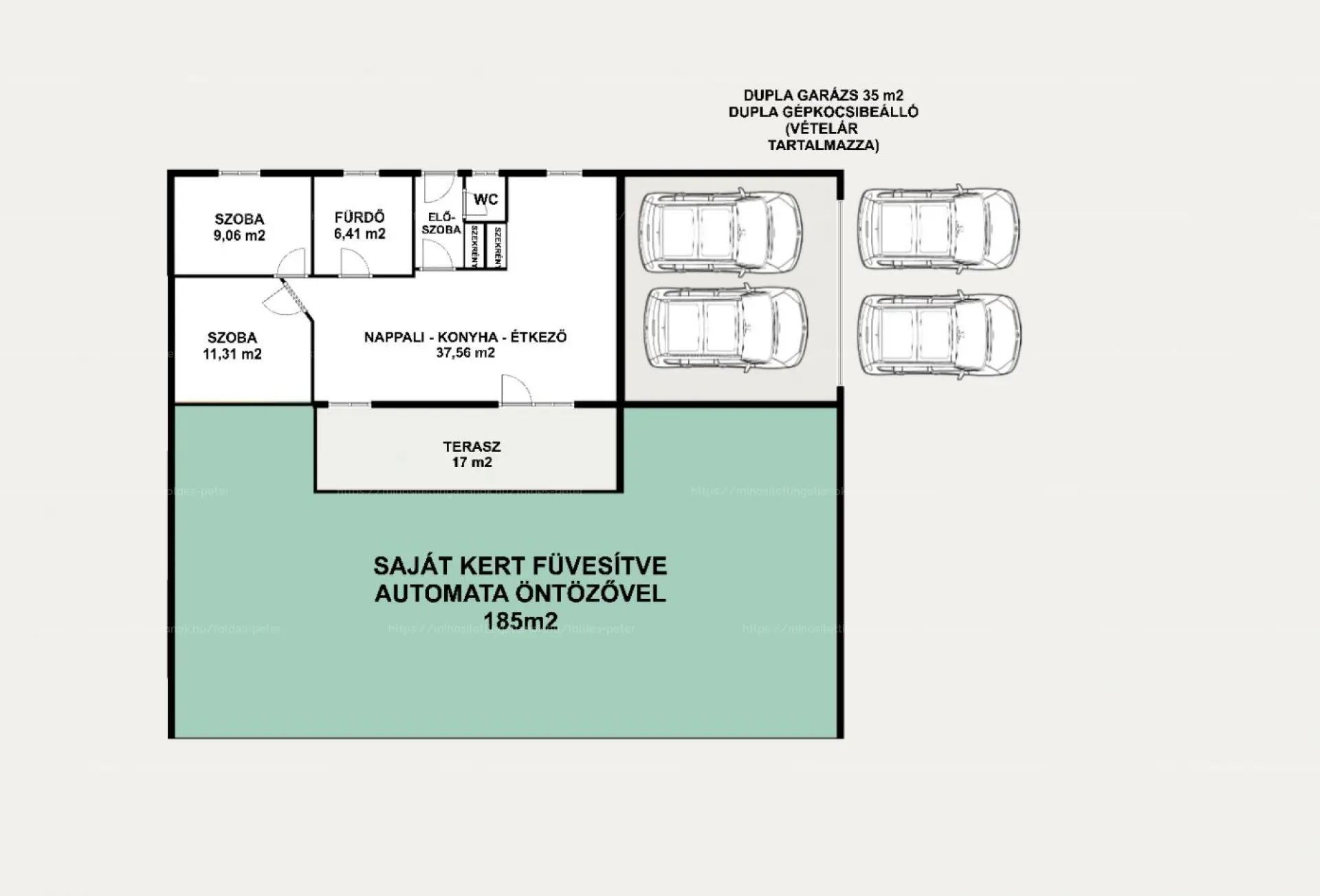 - Parkosított (füvesített) saját udvar automata öntözővel