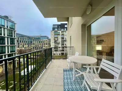 - A lakás különlegessége a déli fekvésű, 9 m²-es erkély, mely a csendes, gondozott belső kertre néz, így ideális hely pihenéshez, munkához vagy reggeli kávézáshoz.