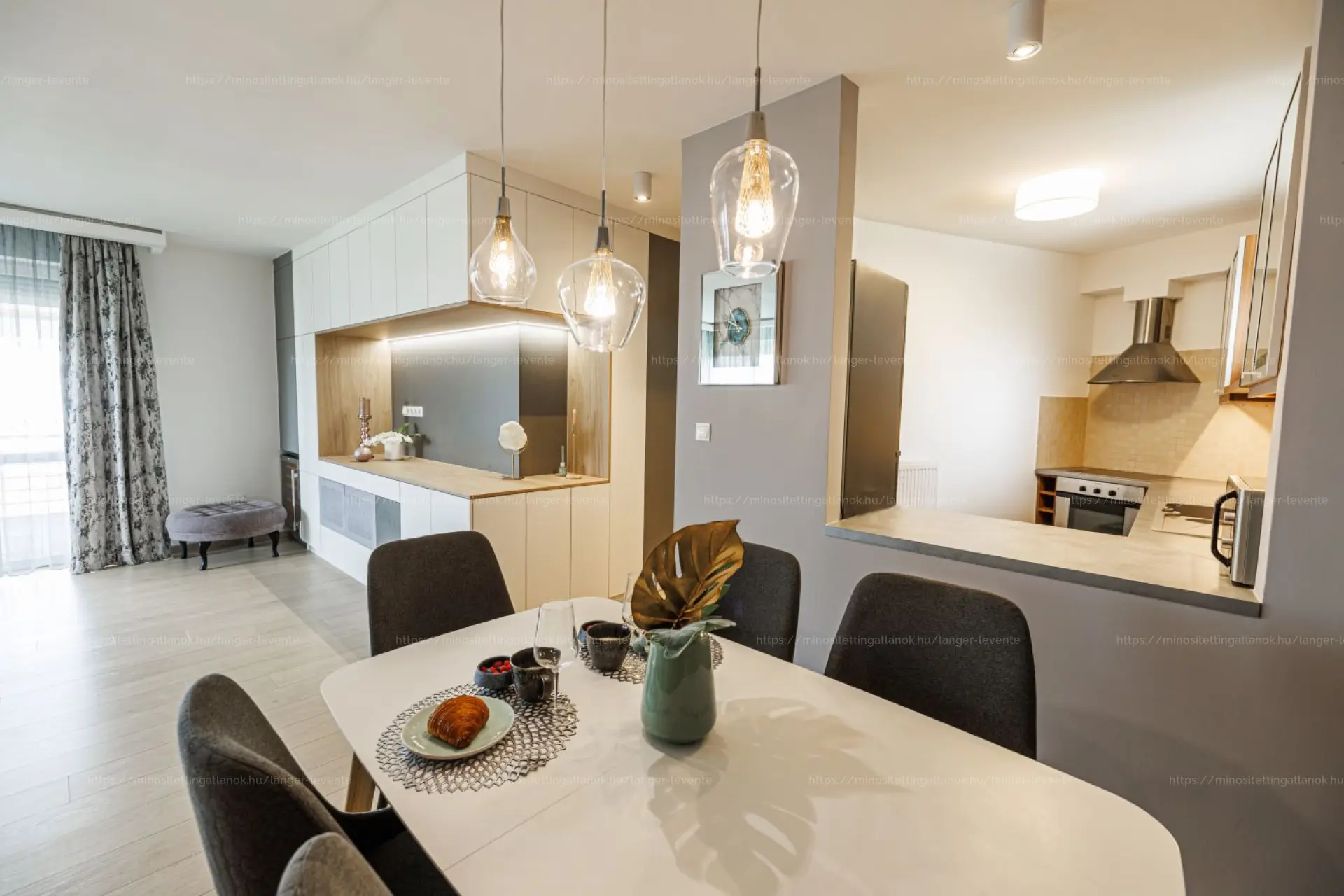 A tágas, napfényben úszó nappali a lakás központi eleme, közvetlen teraszkapcsolattal. A hálószobából és a fürdőszobából is kiléphetsz a teraszra, így a friss levegő és a kikapcsolódás mindig elérhető közelségben van.