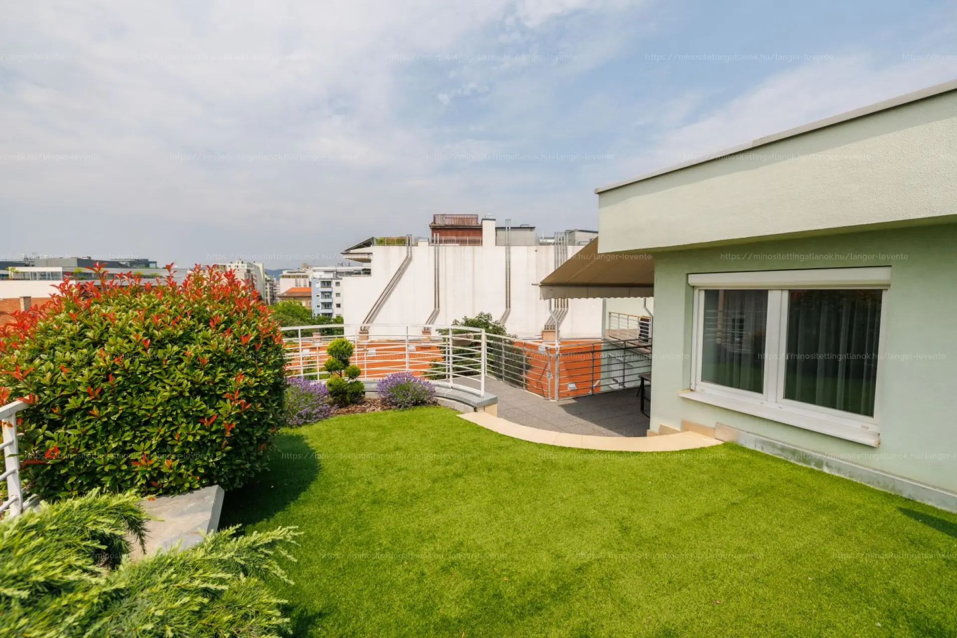 A lakáshoz tartozó, különleges tetőkert a természet nyugalmát és egy városi terasz eleganciáját ötvözi. Gondozásmentes, mégis meghitt szabadtéri élettér, amely tökéletes helyszín a pihenéshez vagy baráti összejövetelekhez.