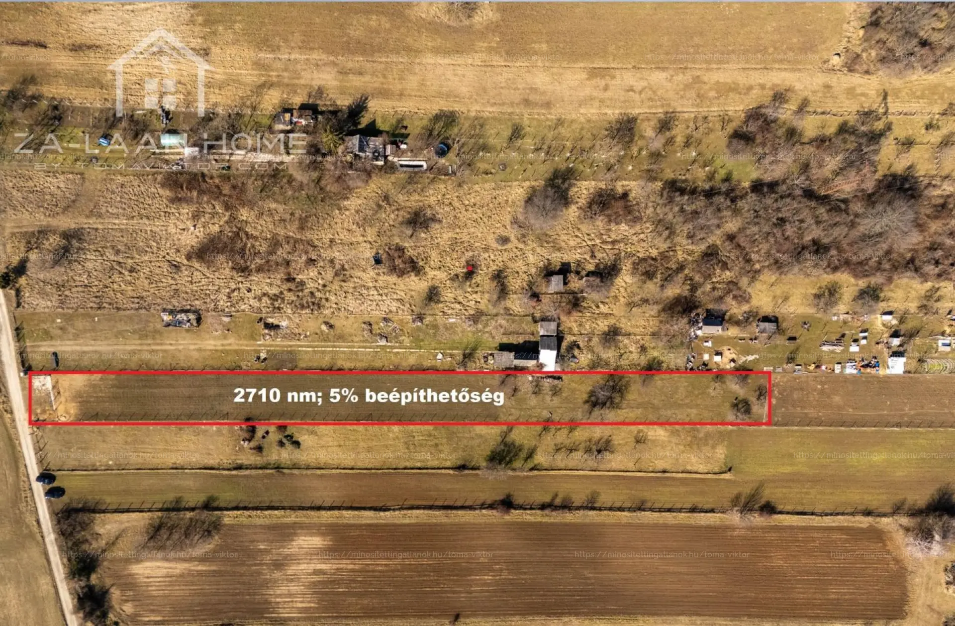 KIVÁLÓ BEFEKTETÉSI LEHETŐSÉG: 2710 m2, TELJESEN KÖRBEKERÍTETT zártkerti telek, 3%-os beépíthetőséggel (max. ~120 m2 épület). RÉSZBEN KÖZMŰVESÍTETT: villany 3x25 A és vezetékes víz a telken. Csatorna nincs, szennyvíz megoldása emésztővel szükséges. A terület művelési ág alól kivett; fejlesztés jogi akadálya nincs.