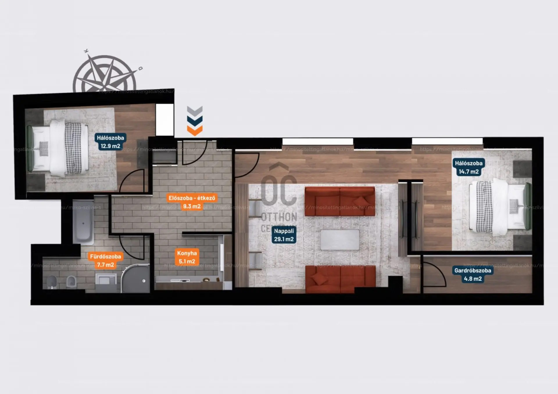 ✅ nappali + 2 hálószoba
