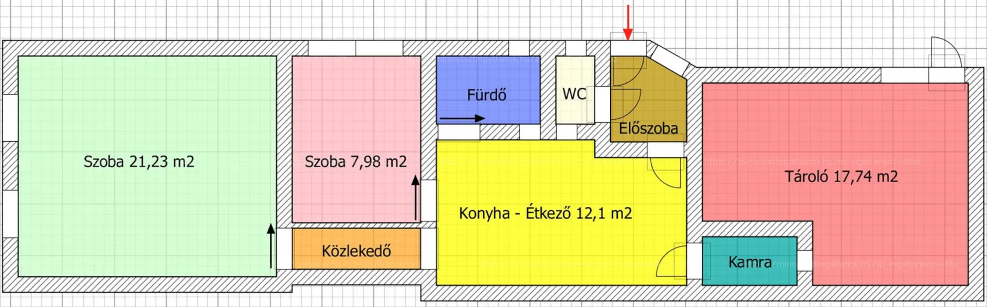 Az ingatlan elkülönül a többi lakástól, azokkal nem határos.