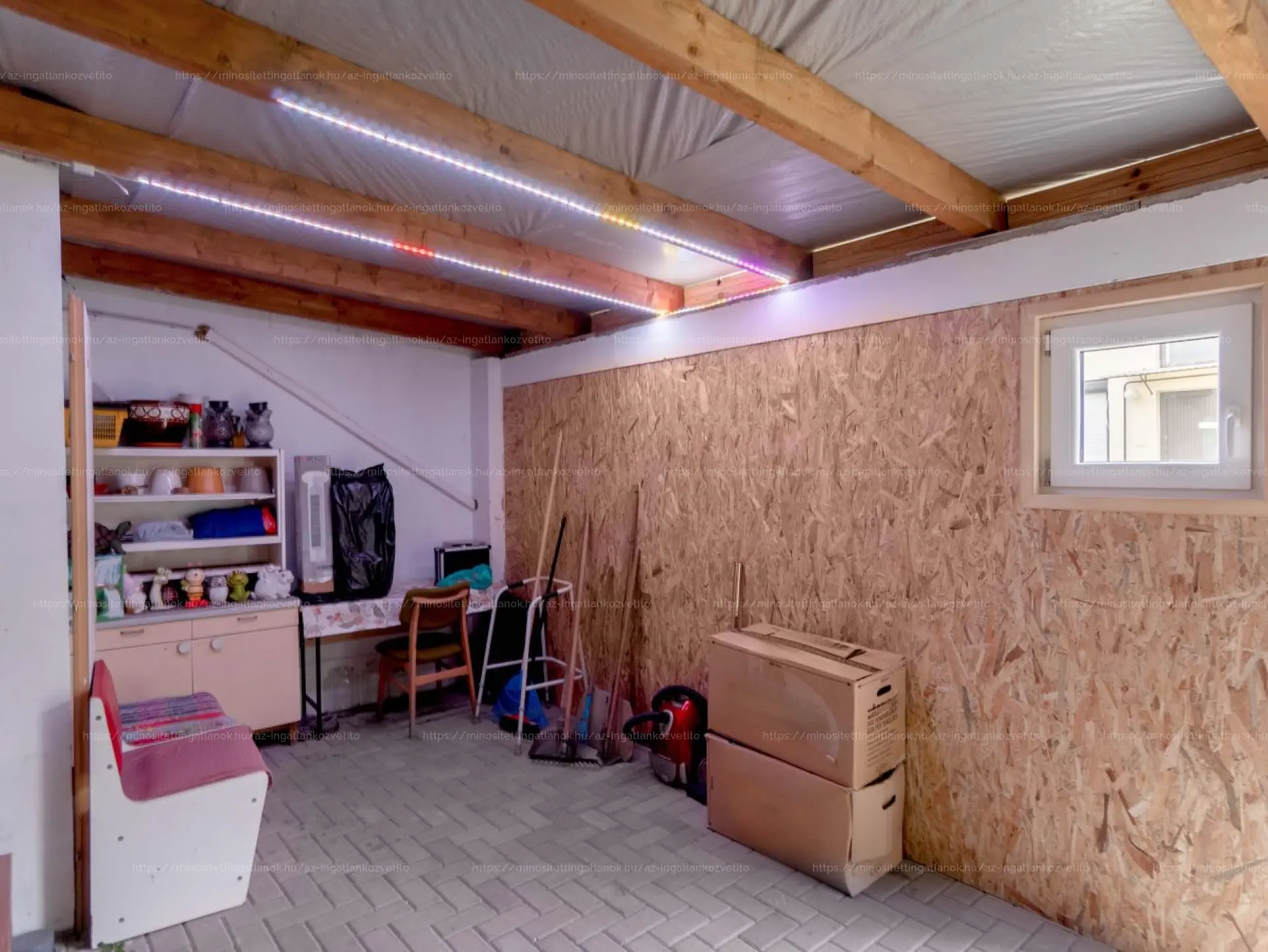 A lakás mögött közvetlenül egy 13.35 m2-es tároló található. Aljzata térkő. 2024-ben ezt lezárták, , így részben tégla, részbe fa szerkezettel rendelkezik, amit szerkezetében hőszigeteltek. A lakás bővítése akár ebbe az irányba is megoldható.