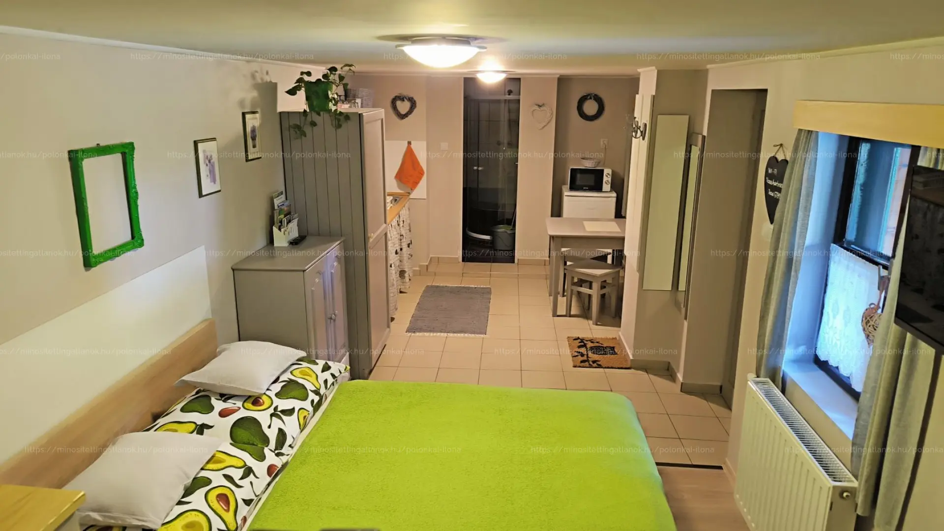 Hatalmas telek: Az 1344 m²-es telek elegendő helyet biztosít kikapcsolódásra, kertészkedésre vagy további fejlesztésekre. A telek végéig a víz és a villany is kiépítésre került, ami további apartmanok kialakítását teszi lehetővé.